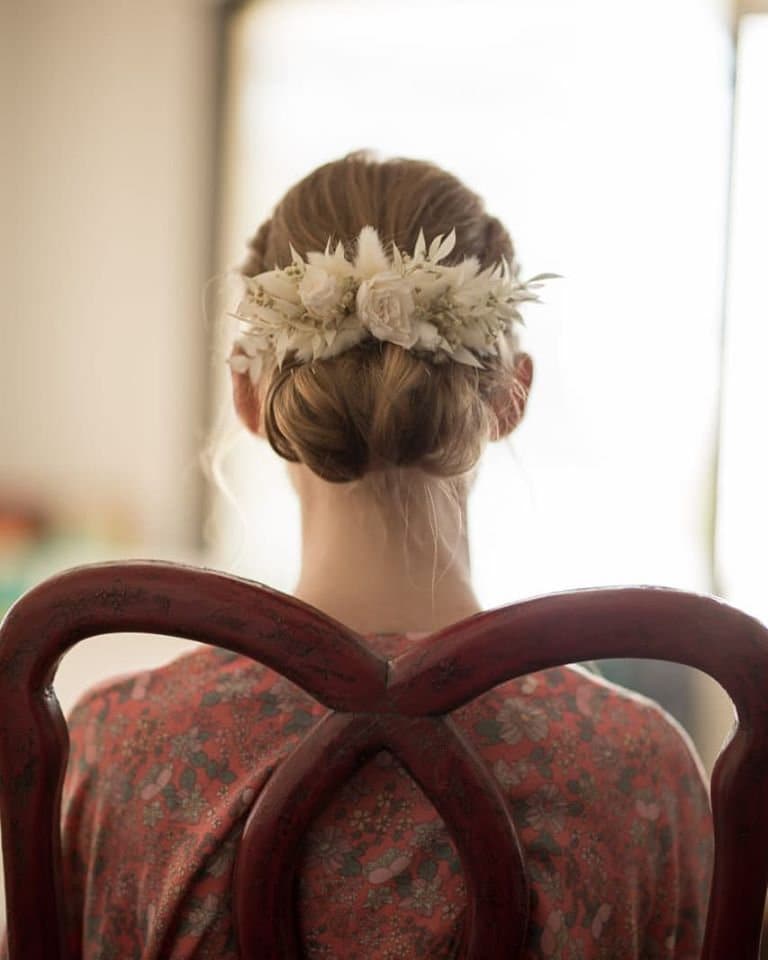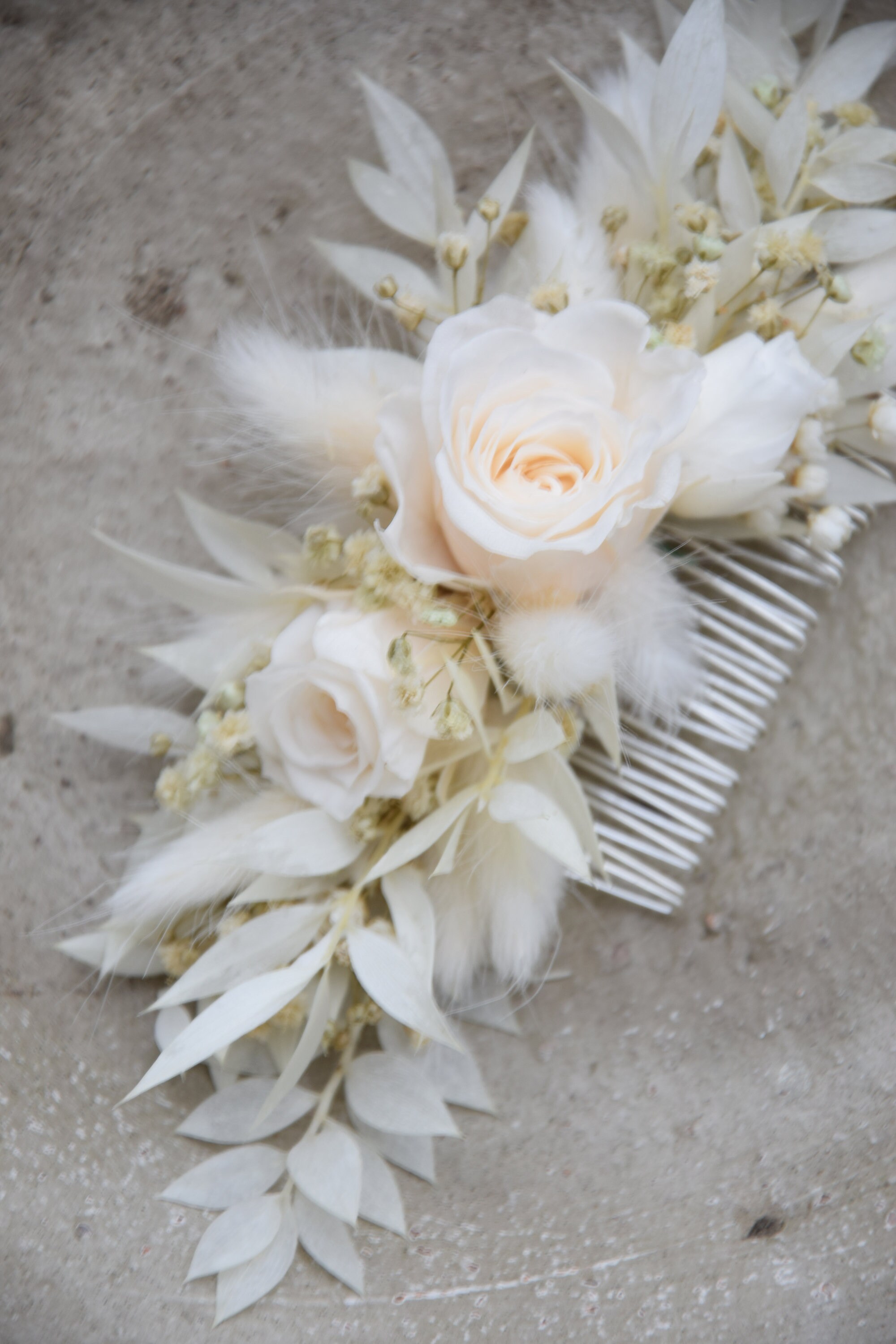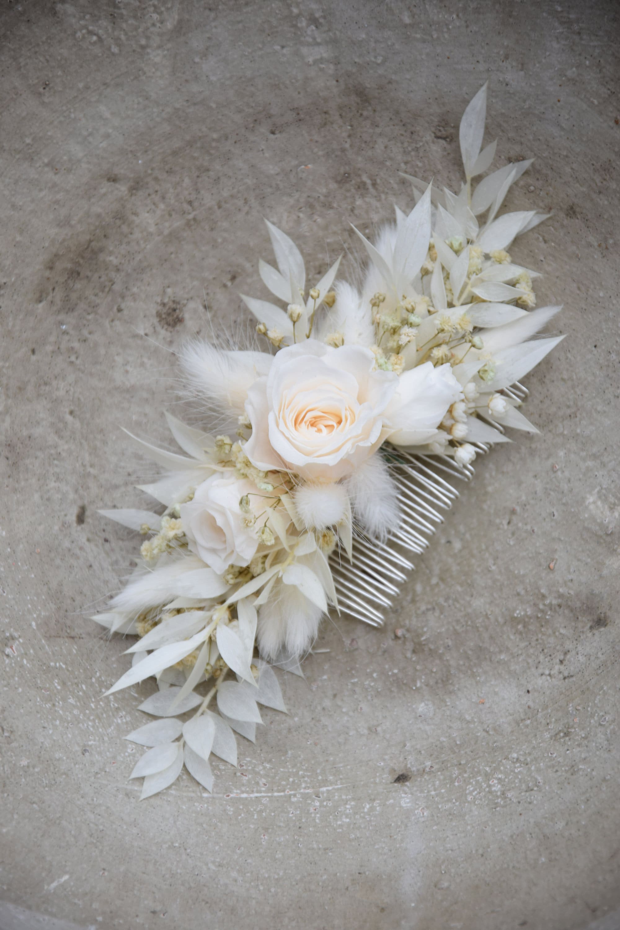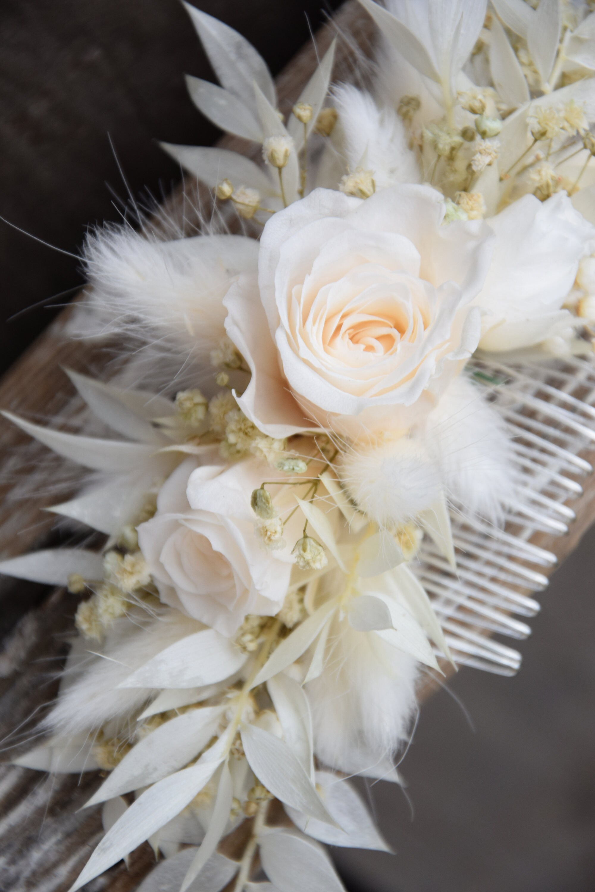 Biały grzebyk do włosów z suszonych i stabilizowanych kwiatów