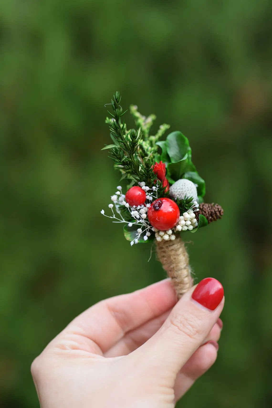 Rustykalna butonierka to idealny element stroju Pana młodego lub drużby. Świetnie sprawdzi się też jako dodatek ślubny dla pozostałych gości weselnych. W tej wyjątkowej butonierce znajduje się len oraz kłosy wielu zbóż. Całość wykończona jest naturalnym jutowym sznureczkiem. Butonierka wykonana jest z suszonych kwiatów zatem jest trwała. Aby była piękna przez bardzo długi czas wystarczy trzymać ja z dala od deszczu lub wilgoci. Butonierka zapinana jest z tyłu na małą agrafkę i ma 10 cm długości. Jeśli chciałbyś zamówić więcej sztuk niż widzisz na liście, napisz do mnie , a ja z przyjemnością stworzę wybrana ilość dla Wiele z moich produktów to projekty indywidualne które tworzę na Wasze specjalne zamówienie. Byłabym bardzo szczęśliwa mogąc pracować z tobą, aby stworzyć dokładnie to, czego szukasz! Dziękuję za wizytę w naszym sklepie.