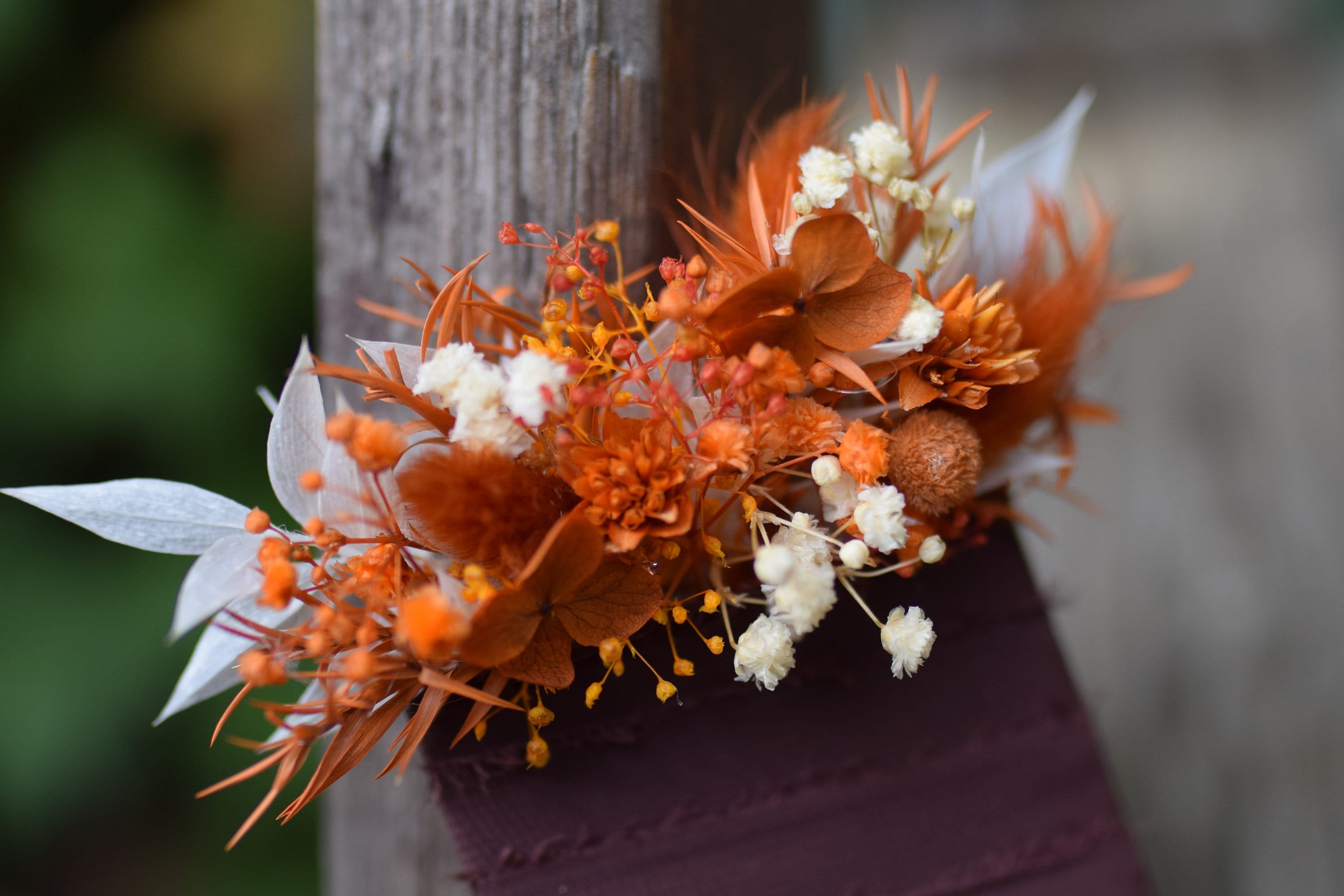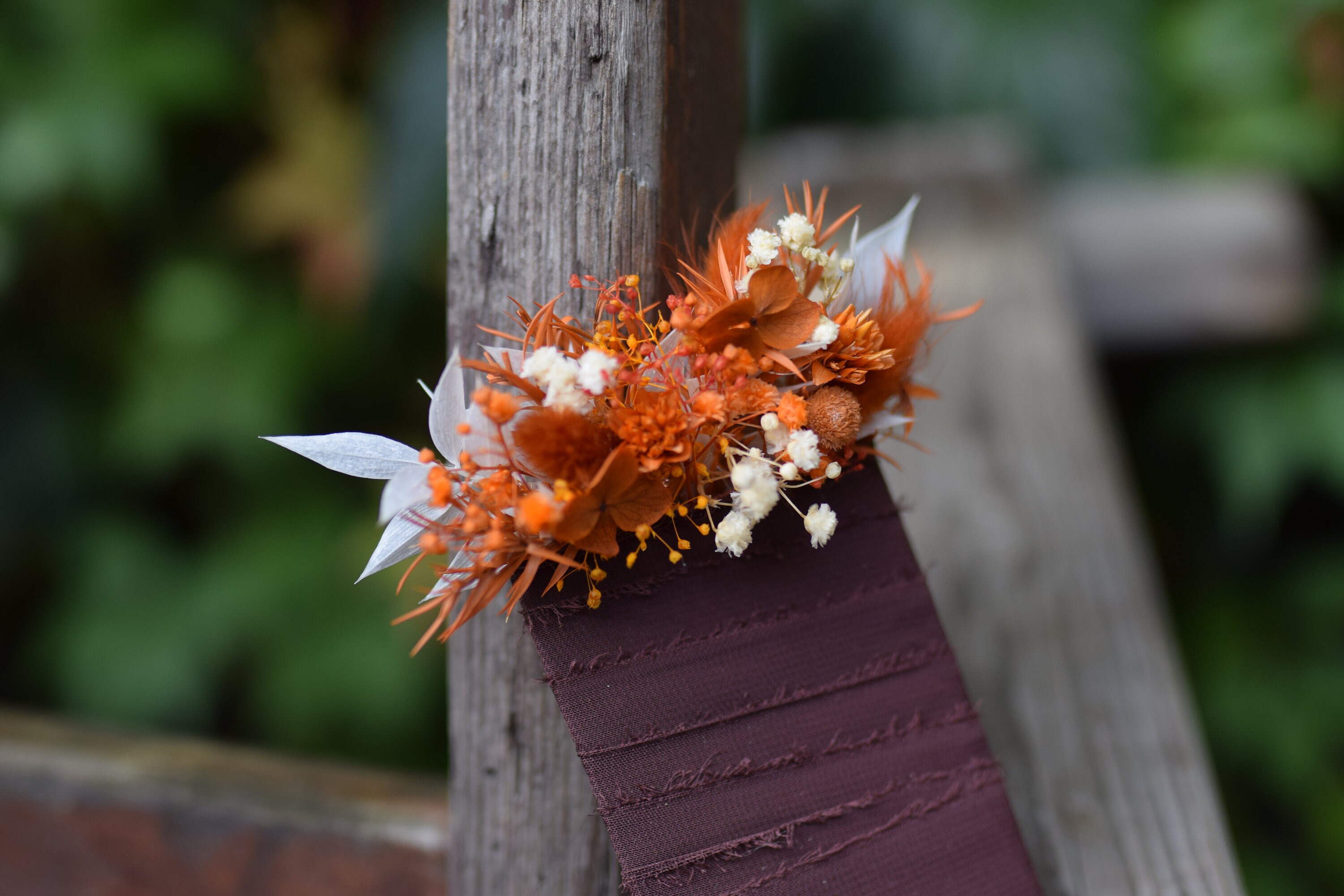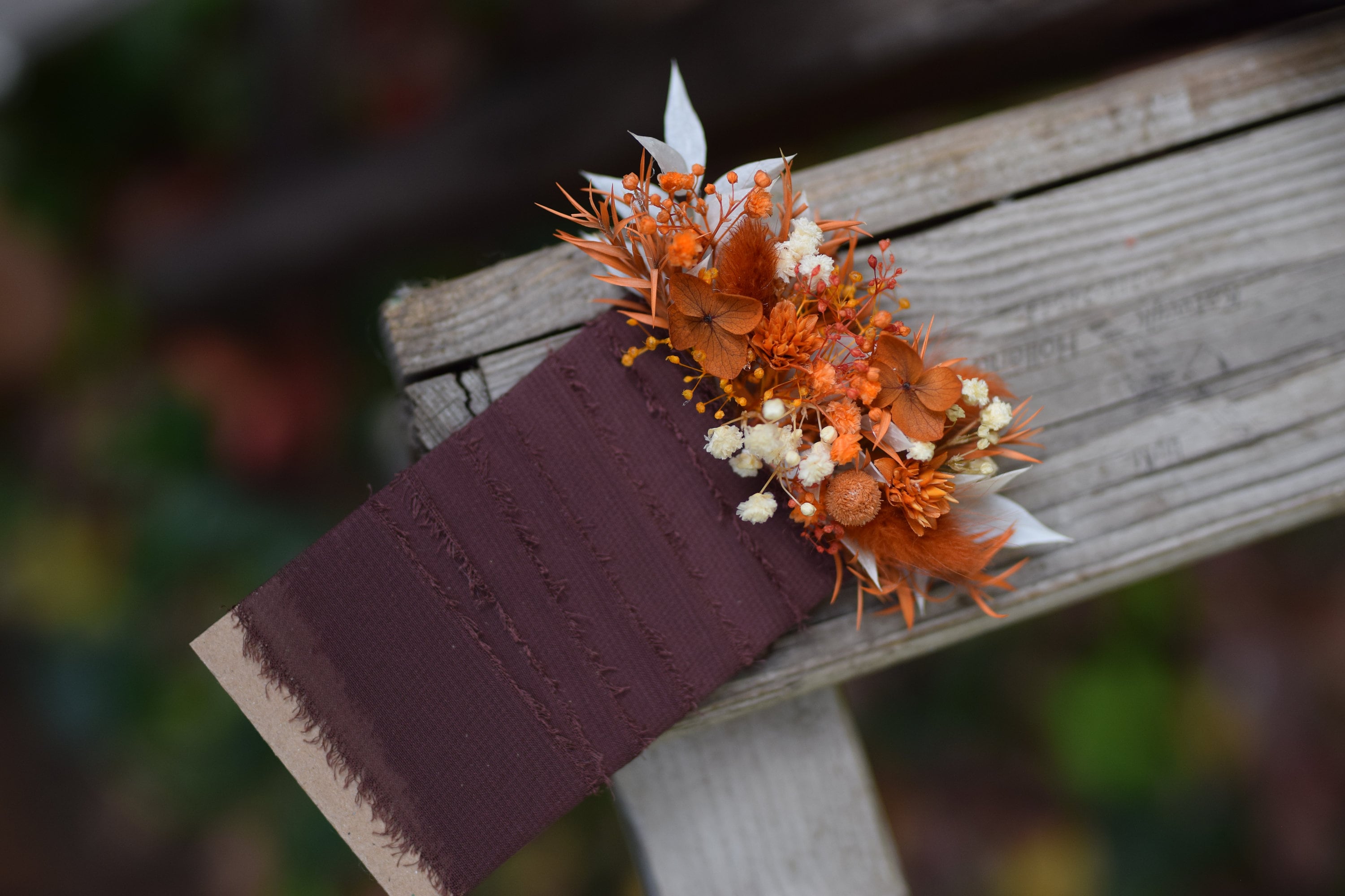 Oferujemy rustykalną butonierkę w stylu pocket flowers, która jest idealnym dodatkiem do stroju Pana młodego, drużby lub pozostałych gości weselnych. Głowne kolory butonierki to pomarańczowy, drzawy, terracota, bez i biel. Nasze butonierki są nie tylko modnym trendem ślubnym, ale także praktycznym rozwiązaniem, gdyż chowane są do kieszonki marynarki. Każda butonierka jest starannie wykonana z suszonych i stabilizowanych roślin i wykończona jest wstążką, co nadaje jej rustykalny i uroczy wygląd. Dzięki temu są trwałe i zachowują swoje piękno przez bardzo długi czas. Aby zapewnić im długotrwałą świeżość, zalecamy trzymanie ich z dala od deszczu lub wilgoci. Jeśli potrzebujesz większej ilości butonierek, niż widzisz dostępnych na liście, śmiało napisz do nas. Z przyjemnością stworzymy wybraną ilość specjalnie dla Ciebie. Nasze produkty są nie tylko piękne, ale także dostępne na zamówienie, dzięki czemu możemy spełnić Twoje indywidualne wymagania. Jesteśmy dumni z naszych unikalnych projektów, które tworzymy na specjalne zamówienia naszych klientów. Chętnie podejmiemy się współpracy z Tobą, aby stworzyć dokładnie to, czego szukasz na ten wyjątkowy dzień. Dziękujemy za odwiedzenie naszego sklepu. Mamy nadzieję, że nasze rustykalne butonierki dodadzą wyjątkowego uroku Twojemu ślubowi. Nie wahaj się skontaktować z nami, jeśli masz jakiekolwiek pytania lub specjalne życzenia. Czekamy na Twoją wiadomość i możliwość współtworzenia tego wyjątkowego dnia z Tobą.