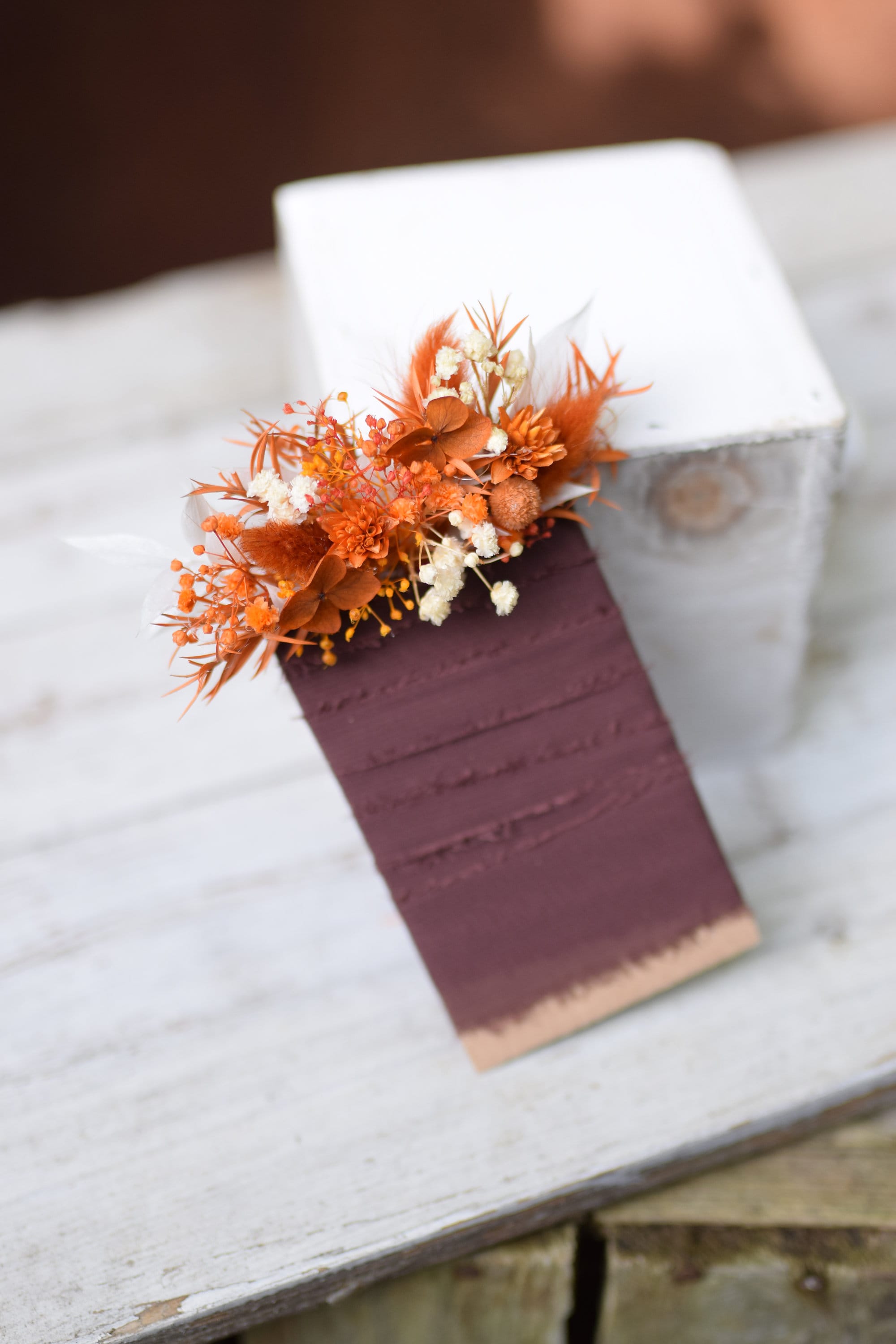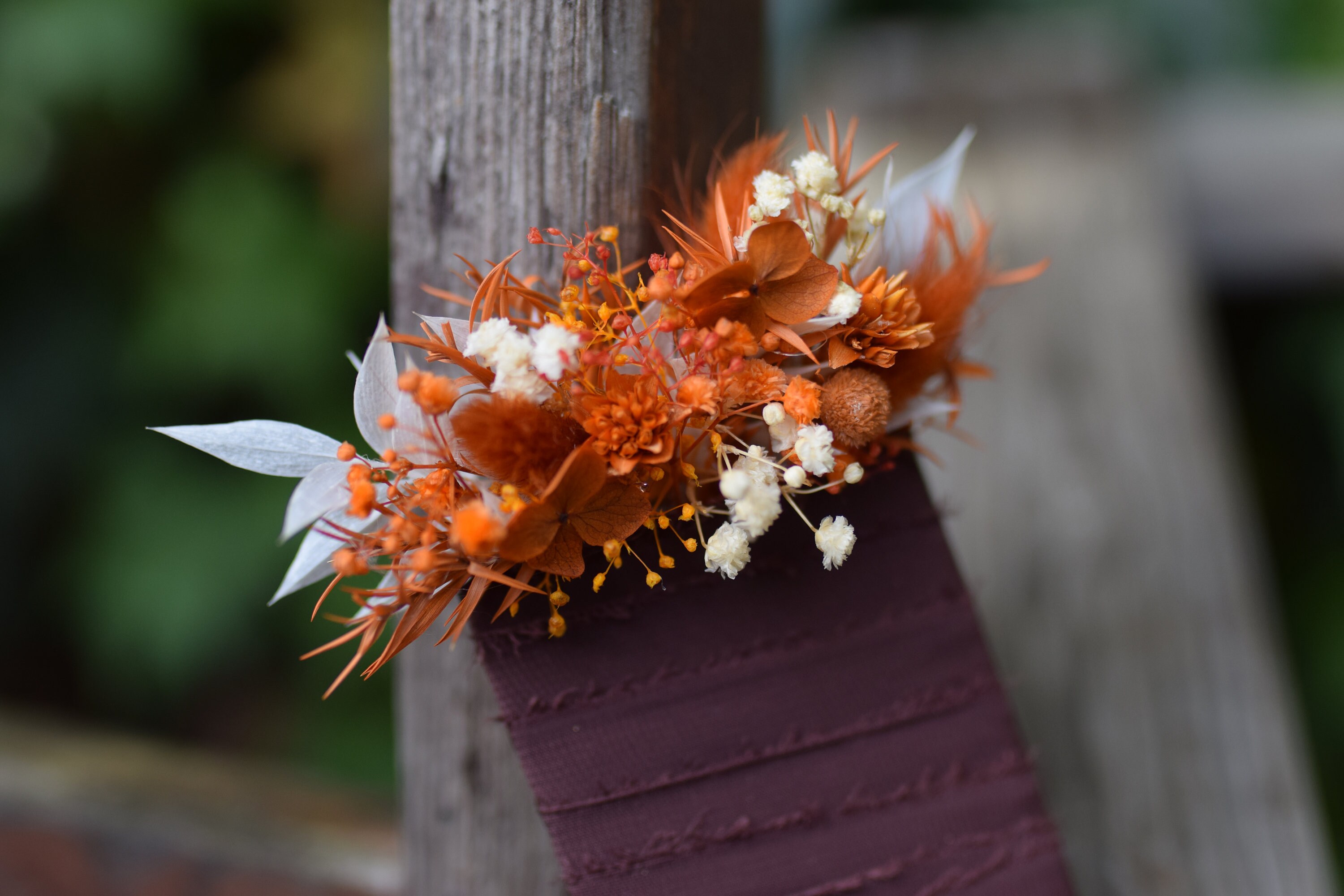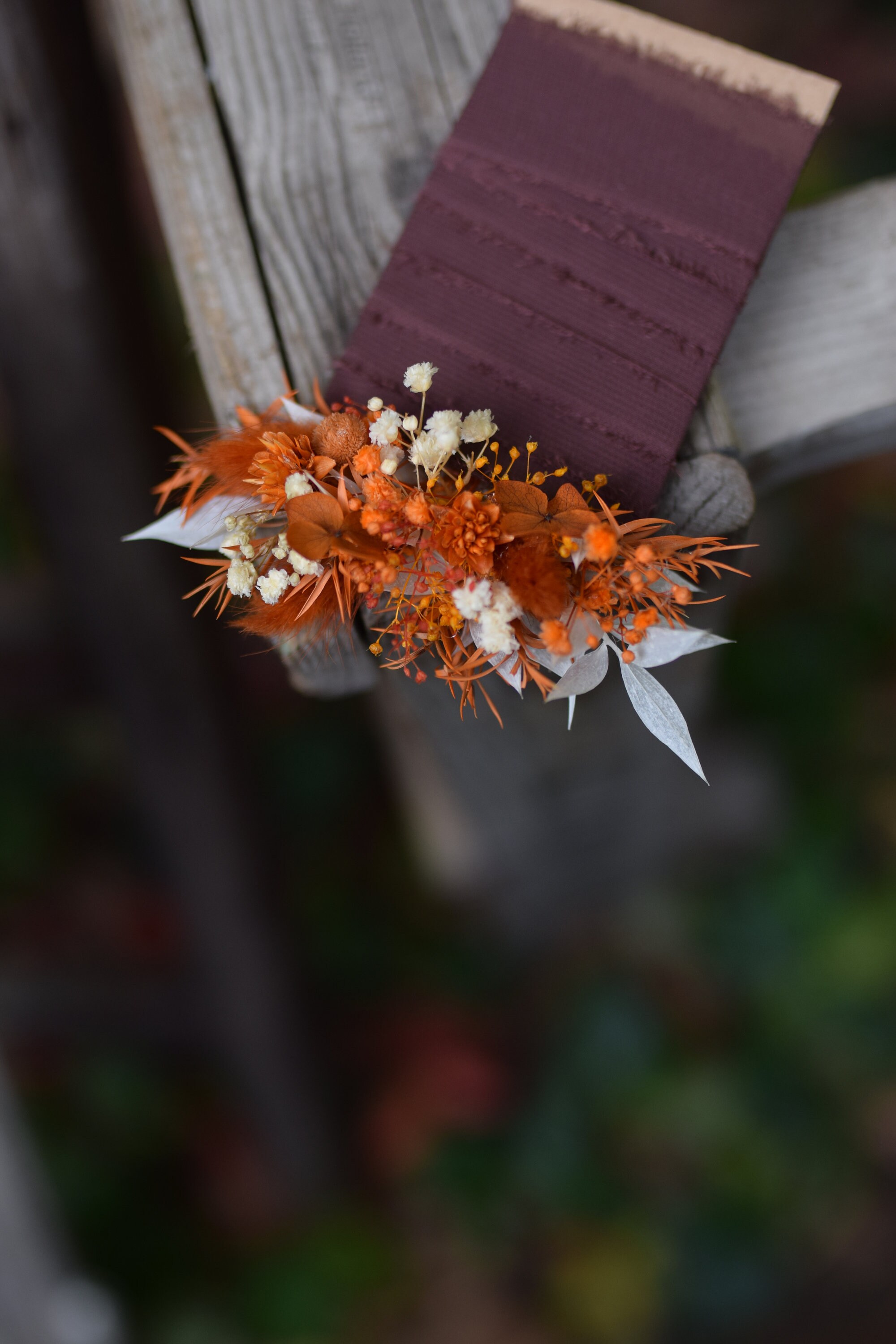 Oferujemy rustykalną butonierkę w stylu pocket flowers, która jest idealnym dodatkiem do stroju Pana młodego, drużby lub pozostałych gości weselnych. Głowne kolory butonierki to pomarańczowy, drzawy, terracota, bez i biel. Nasze butonierki są nie tylko modnym trendem ślubnym, ale także praktycznym rozwiązaniem, gdyż chowane są do kieszonki marynarki. Każda butonierka jest starannie wykonana z suszonych i stabilizowanych roślin i wykończona jest wstążką, co nadaje jej rustykalny i uroczy wygląd. Dzięki temu są trwałe i zachowują swoje piękno przez bardzo długi czas. Aby zapewnić im długotrwałą świeżość, zalecamy trzymanie ich z dala od deszczu lub wilgoci. Jeśli potrzebujesz większej ilości butonierek, niż widzisz dostępnych na liście, śmiało napisz do nas. Z przyjemnością stworzymy wybraną ilość specjalnie dla Ciebie. Nasze produkty są nie tylko piękne, ale także dostępne na zamówienie, dzięki czemu możemy spełnić Twoje indywidualne wymagania. Jesteśmy dumni z naszych unikalnych projektów, które tworzymy na specjalne zamówienia naszych klientów. Chętnie podejmiemy się współpracy z Tobą, aby stworzyć dokładnie to, czego szukasz na ten wyjątkowy dzień. Dziękujemy za odwiedzenie naszego sklepu. Mamy nadzieję, że nasze rustykalne butonierki dodadzą wyjątkowego uroku Twojemu ślubowi. Nie wahaj się skontaktować z nami, jeśli masz jakiekolwiek pytania lub specjalne życzenia. Czekamy na Twoją wiadomość i możliwość współtworzenia tego wyjątkowego dnia z Tobą.