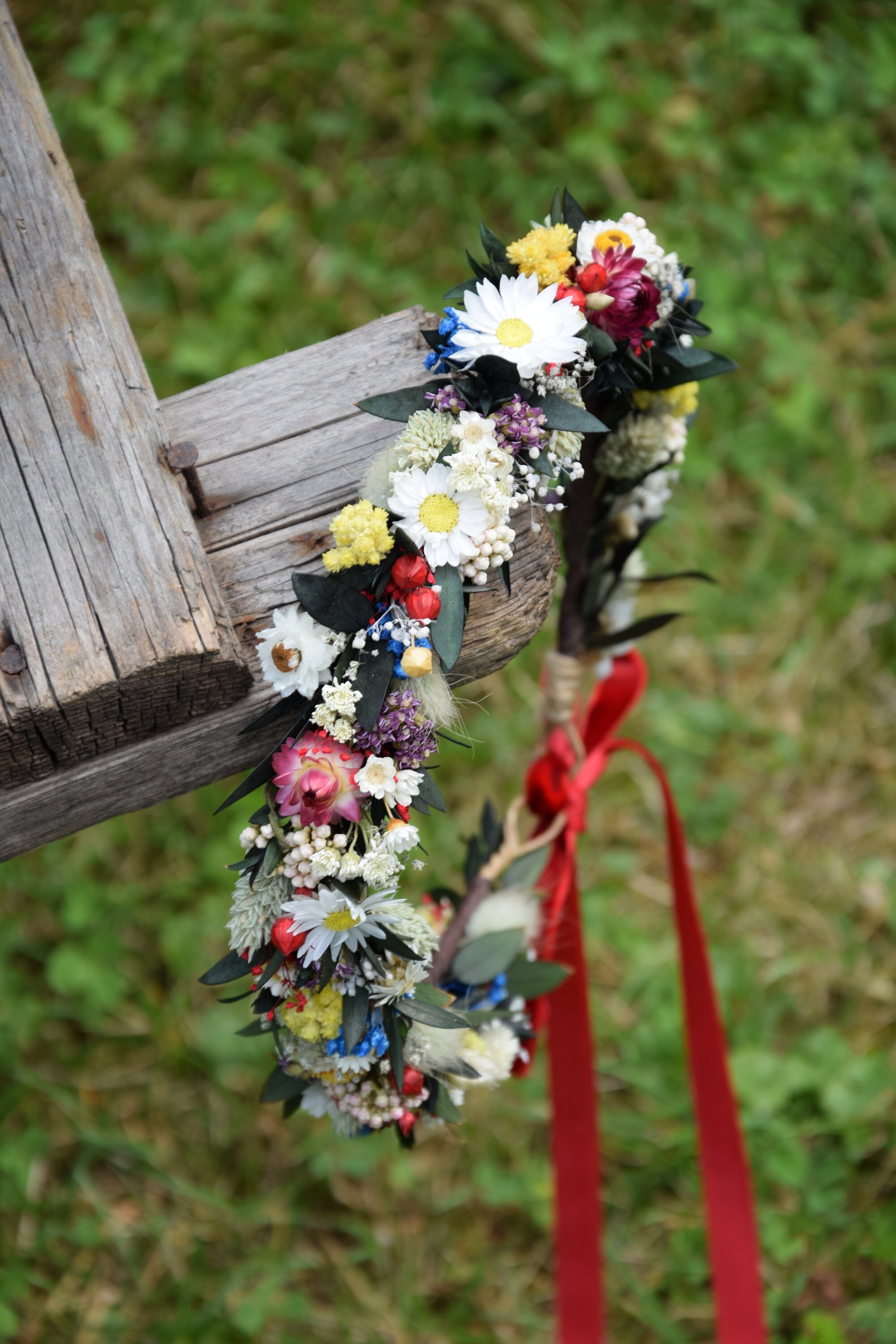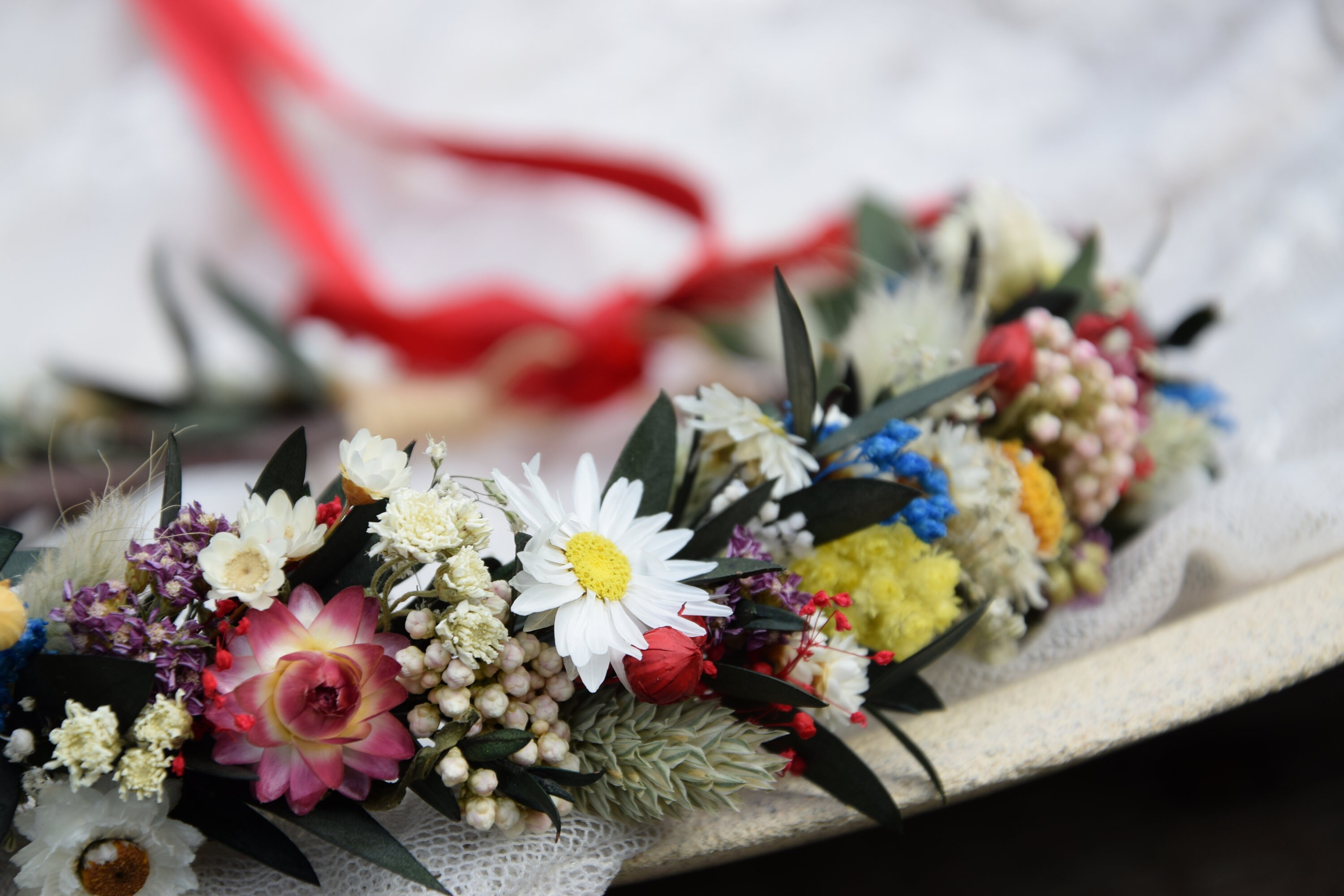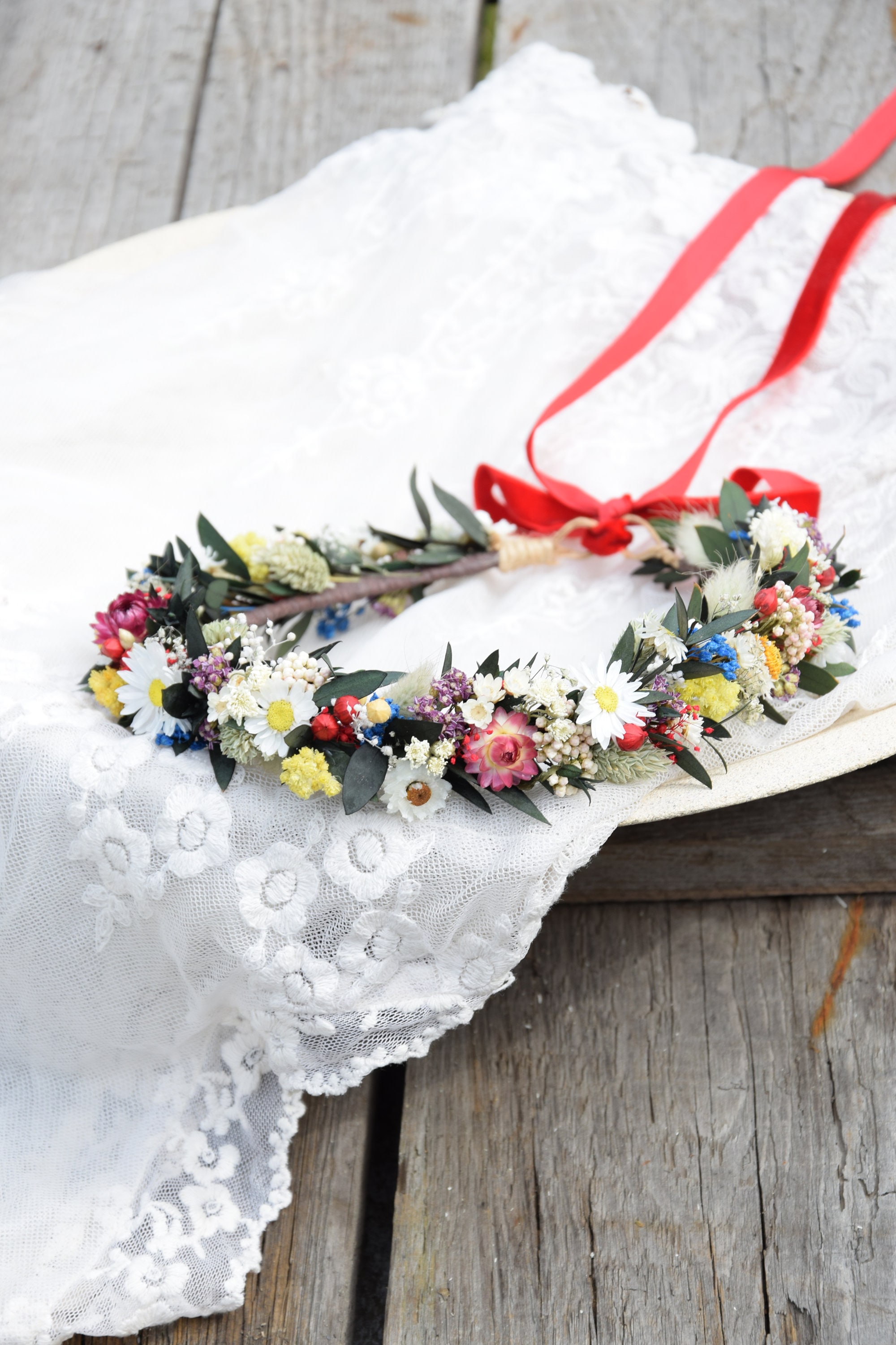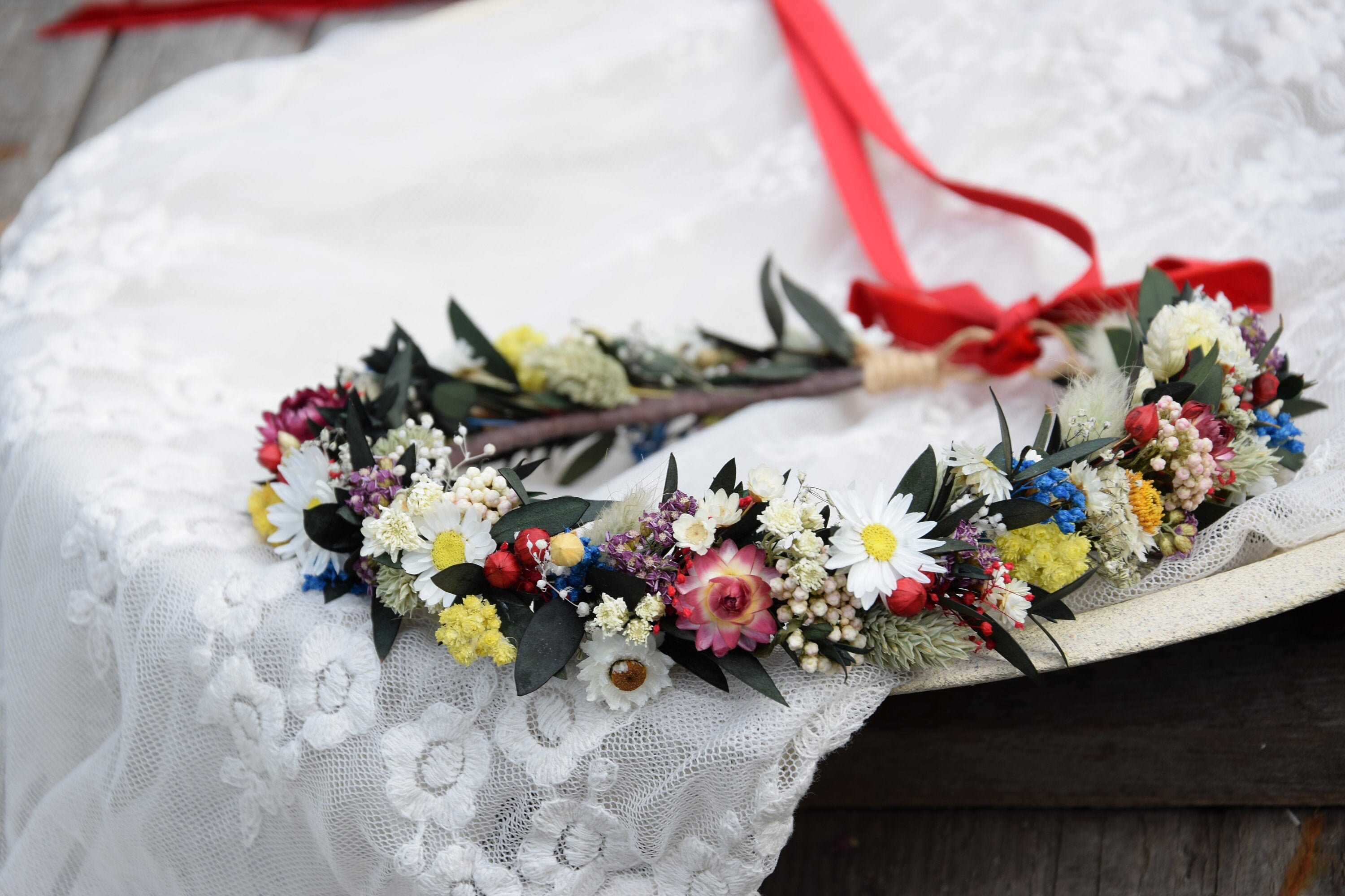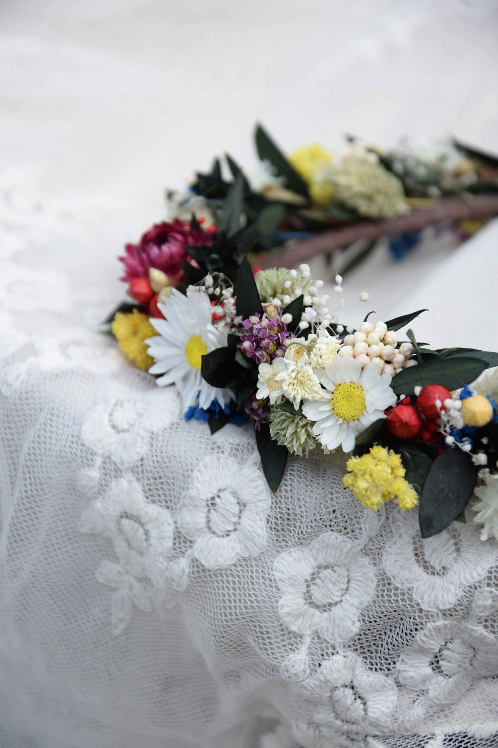 Kolorowy wianek na głowę z suszonych i stabilizowanych kwiatów
