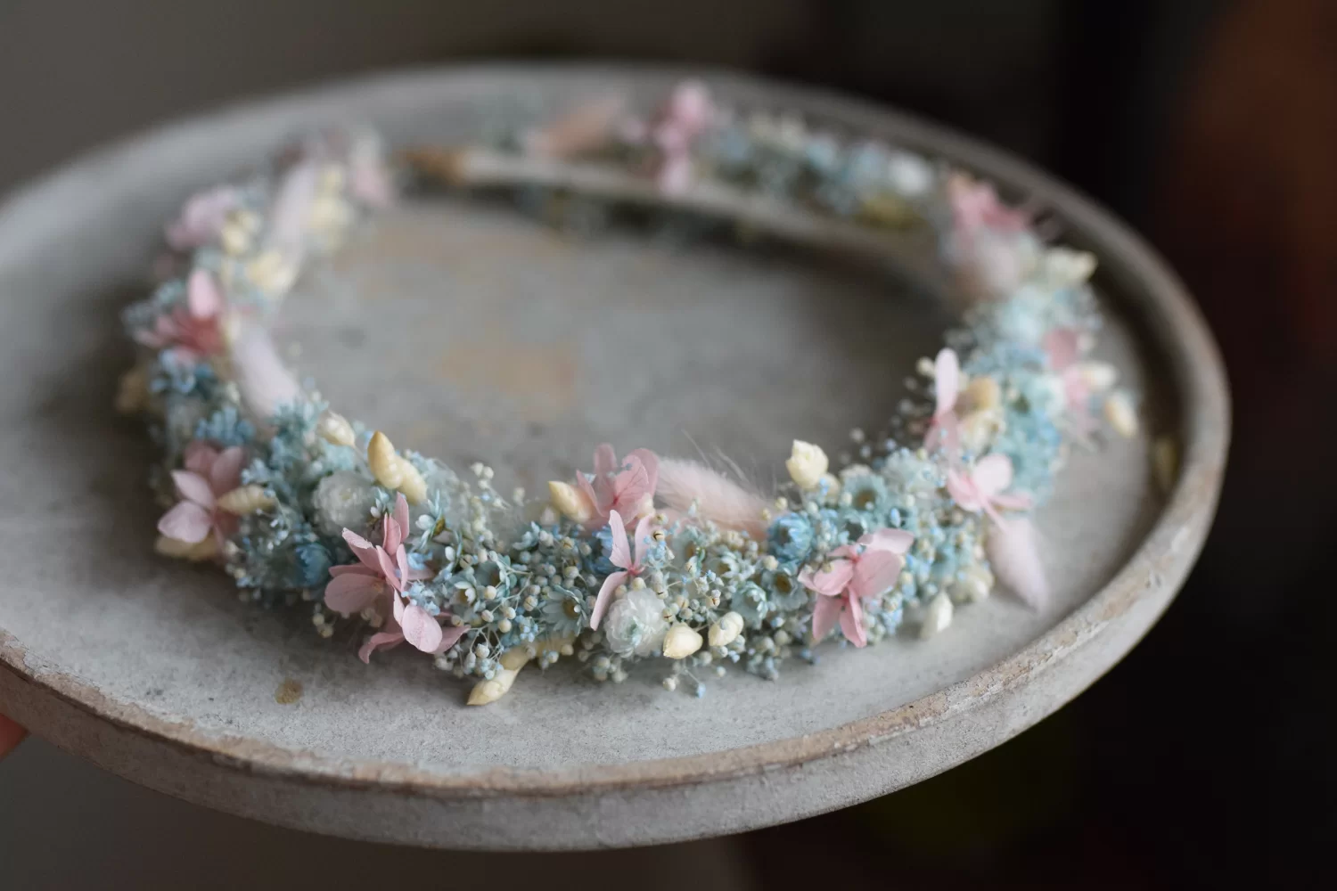 Rustykalny, uroczy wianek na głowę z suszonych i stabilizowanych roślin to idealny dodatek na komunię, chrzest do stylizacji Panny młodej lub druhny. Wianek wykonany jest z niezwykłą dbałością o szczegóły Wianek na głowę to idealna propozycja na ślub, wieczór panieński oraz prezent, sesję zdjęciową, festiwal lub urodziny Rozmiar wianka jest uniwersalny - zawiązywany z tyłu na tasiemkę Suszone i stabilizowane rośliny są trwałe, pod warunkiem, że są odpowiednio przechowywane , czyli dala od światła słonecznego, aby uniknąć blaknięcia kolorów, źródeł ciepła, ekstremalnego zimna i wilgoci.