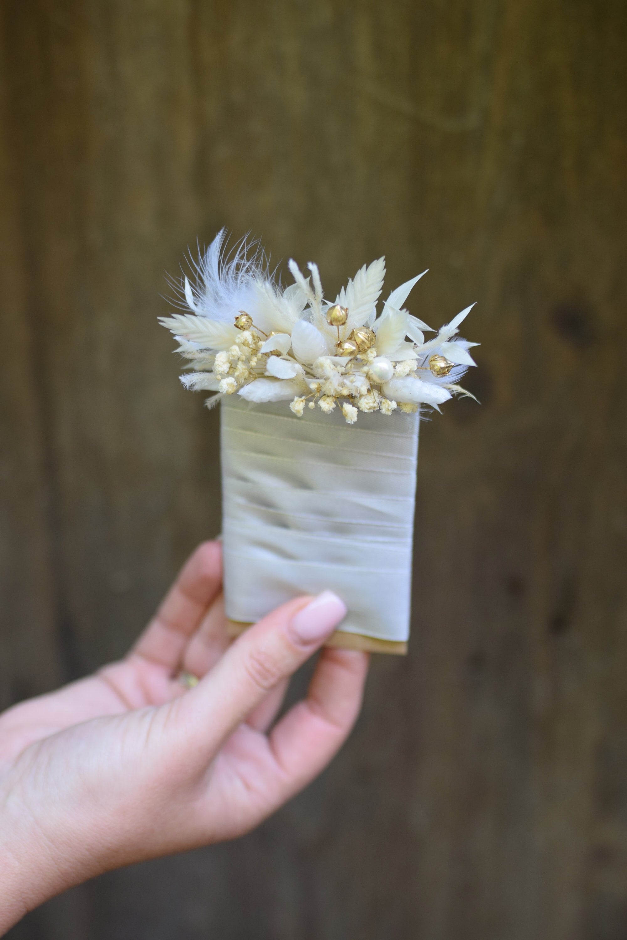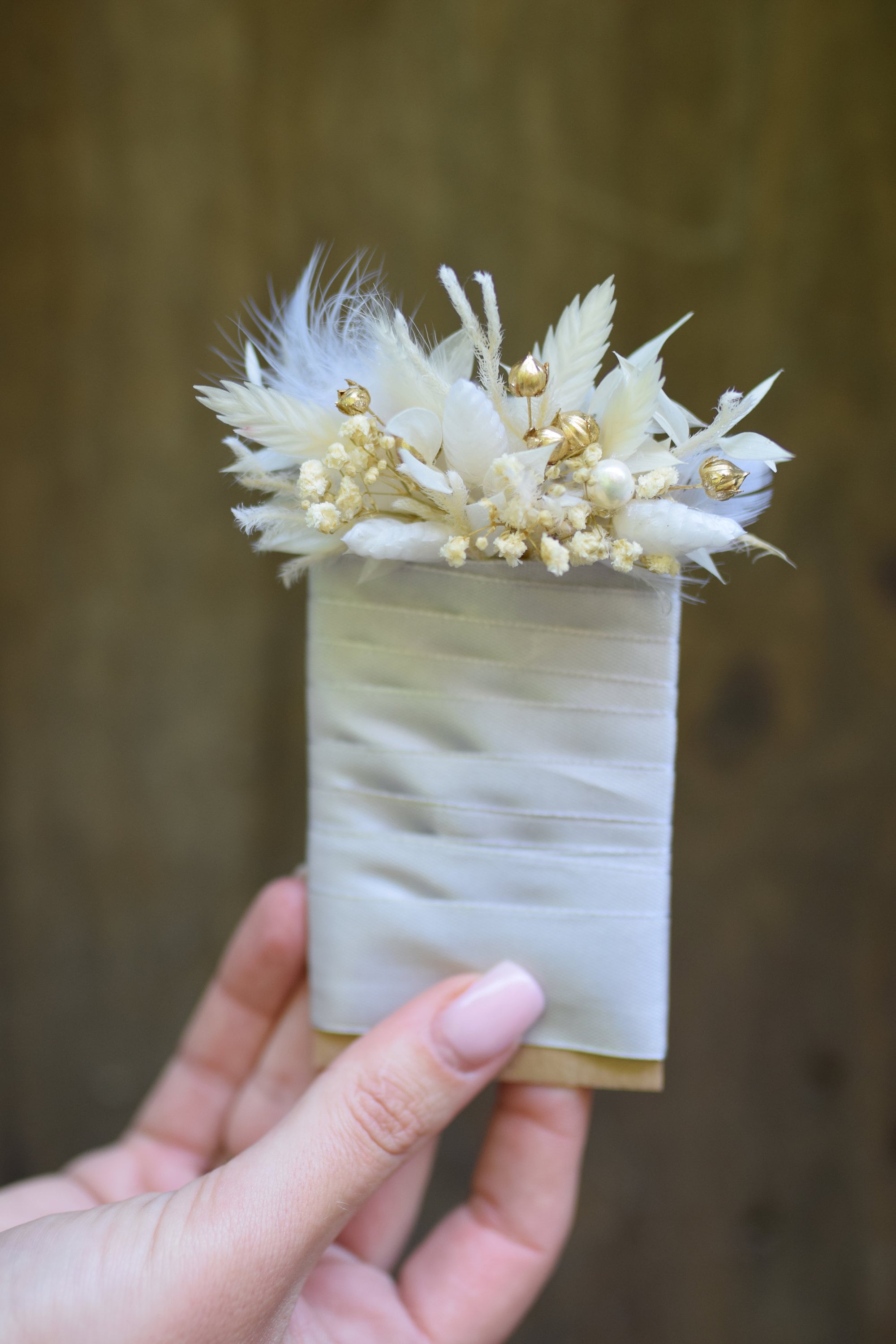 Świetnie sprawdzi się też jako dodatek ślubny dla pozostałych gości weselnych. W tej wyjątkowej butonierce znajduje się len oraz kłosy wielu zbóż. Całość wykończona jest naturalnym jutowym sznureczkiem. Butonierka wykonana jest z suszonych kwiatów zatem jest trwała. Aby była piękna przez bardzo długi czas wystarczy trzymać ja z dala od deszczu lub wilgoci. Jeśli chciałbyś zamówić więcej sztuk niż widzisz na liście, napisz do mnie , a ja z przyjemnością stworzę wybrana ilość dla Ciebie. Wiele z moich produktów to projekty indywidualne które tworzę na Wasze specjalne zamówienie. Byłabym bardzo szczęśliwa mogąc pracować z tobą, aby stworzyć dokładnie to, czego szukasz! Dziękuję za wizytę w naszym sklepie.
