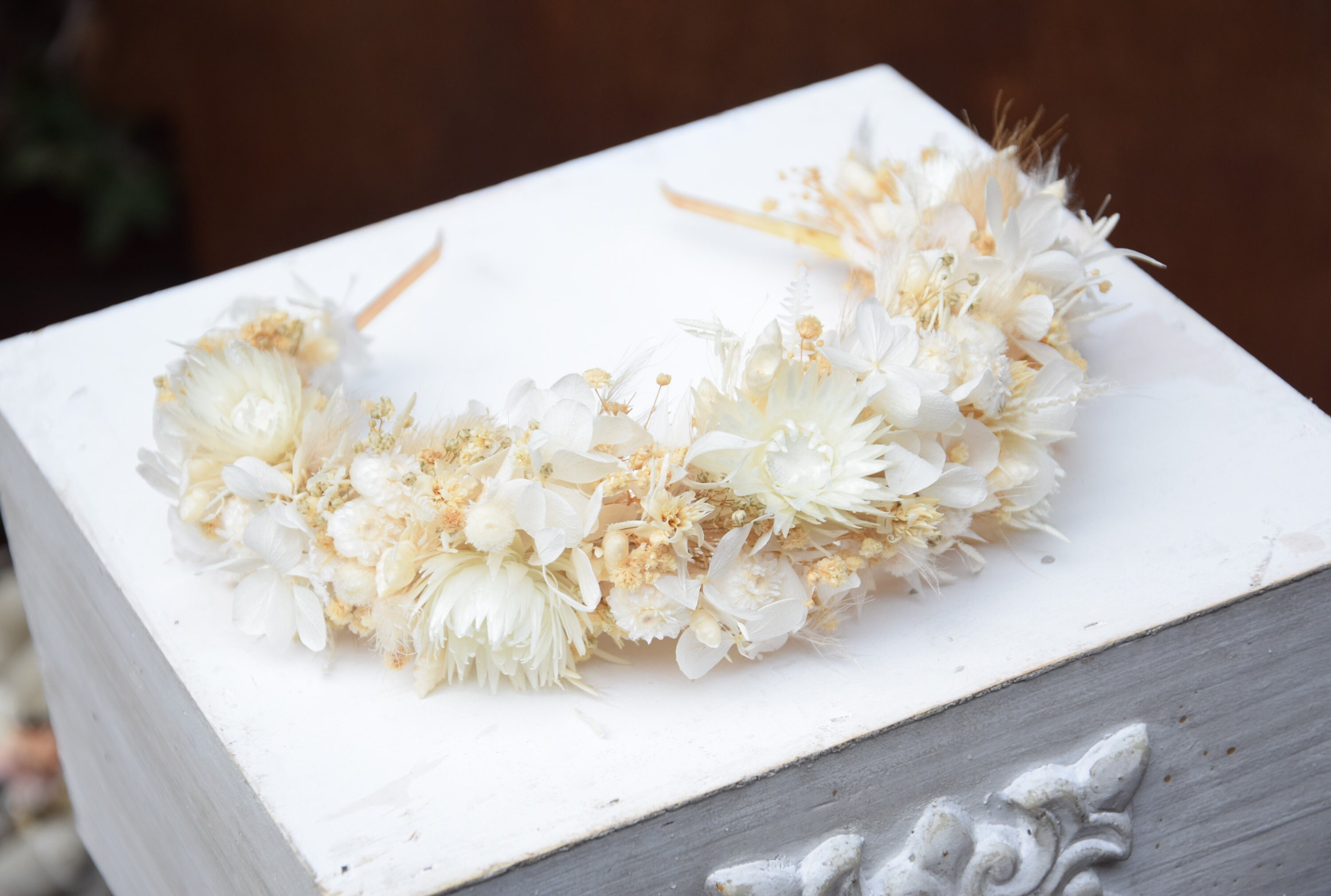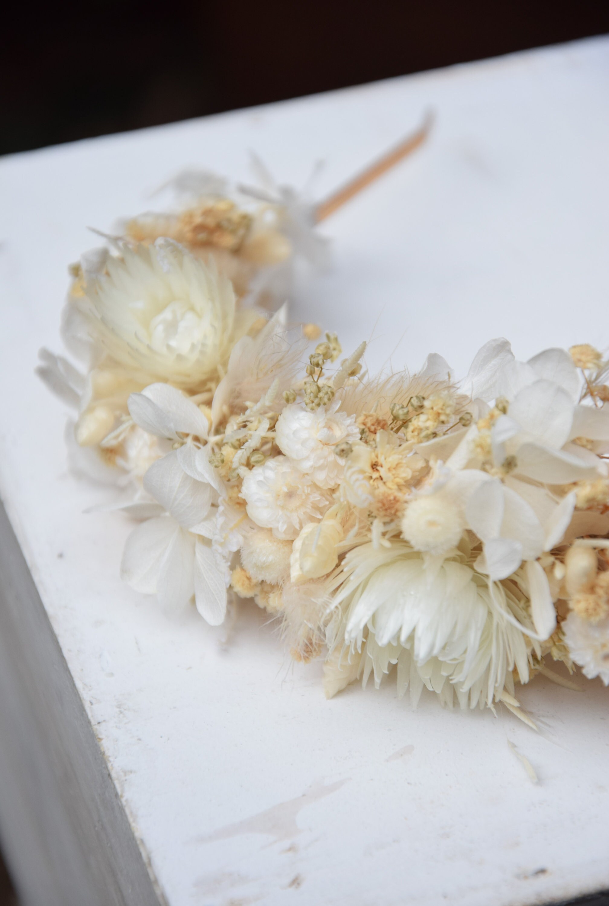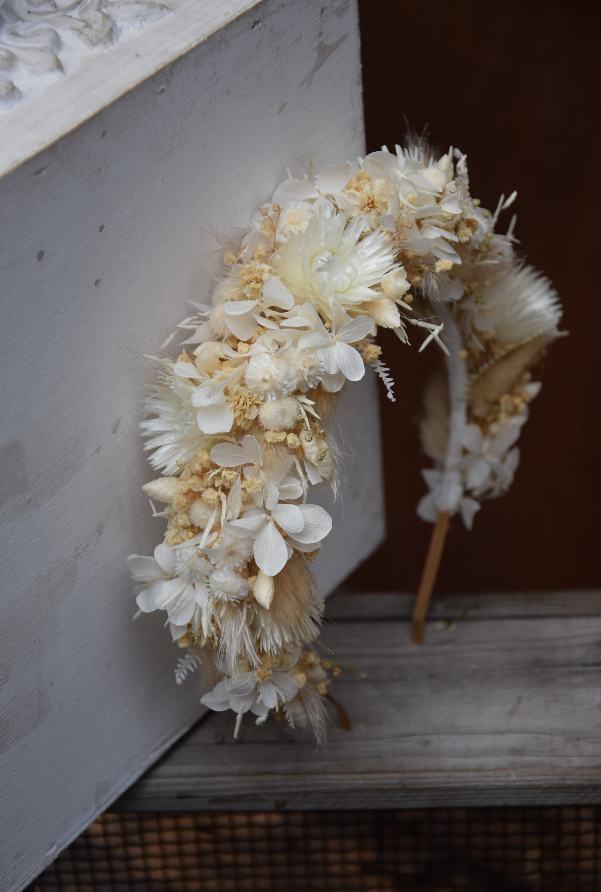 Opaska na głowę z jasnych suszonych i stabilizowancyh kwiatów