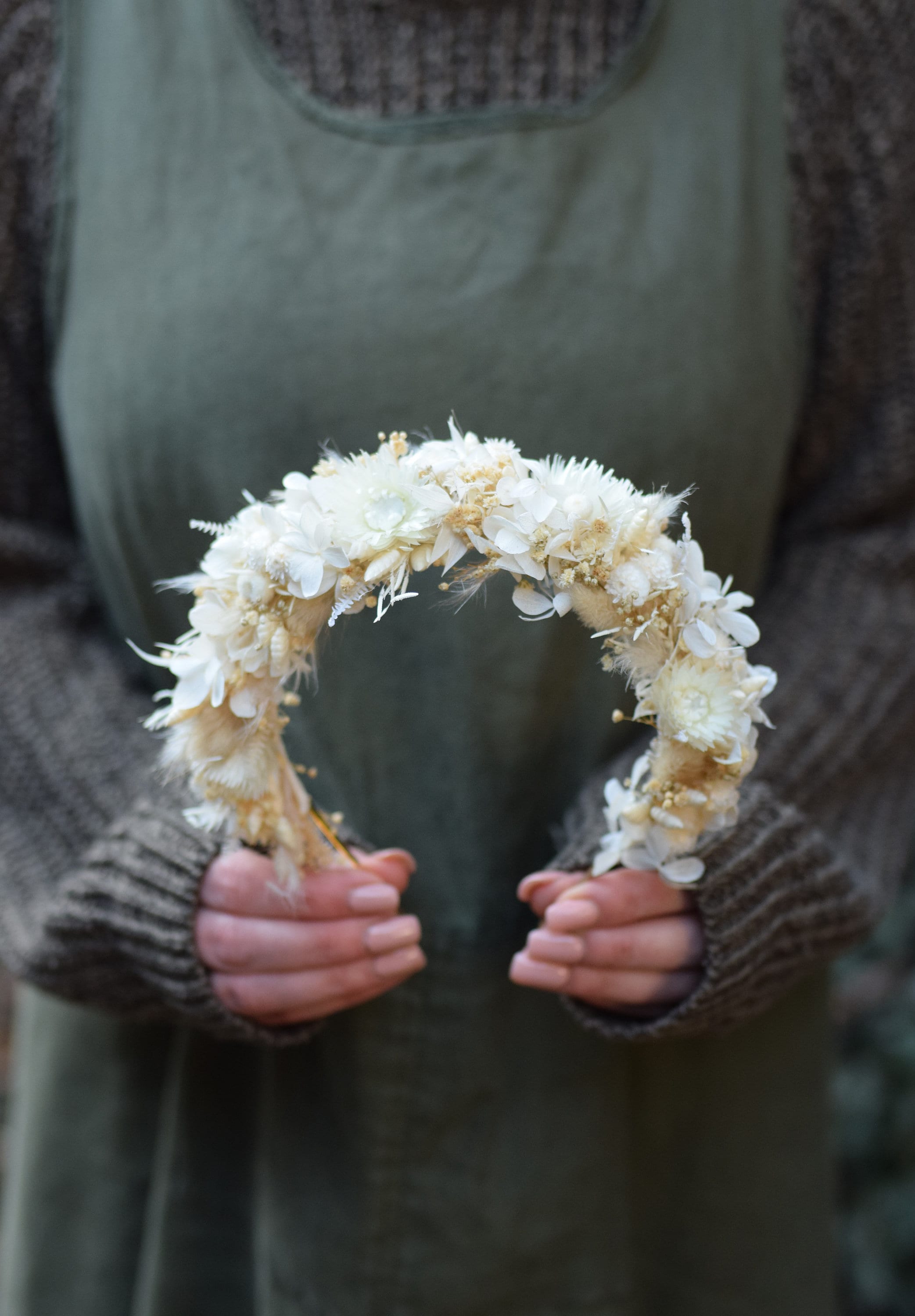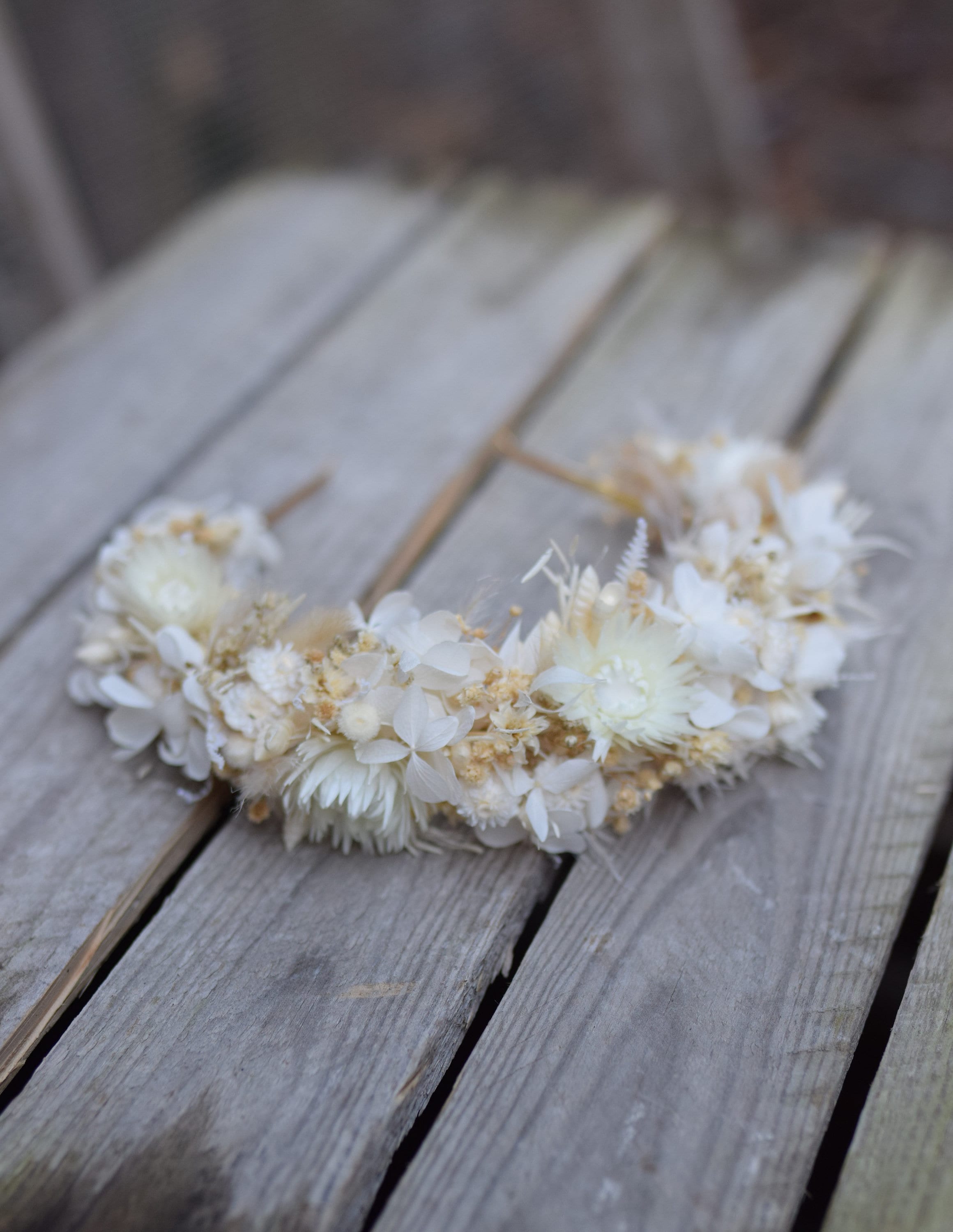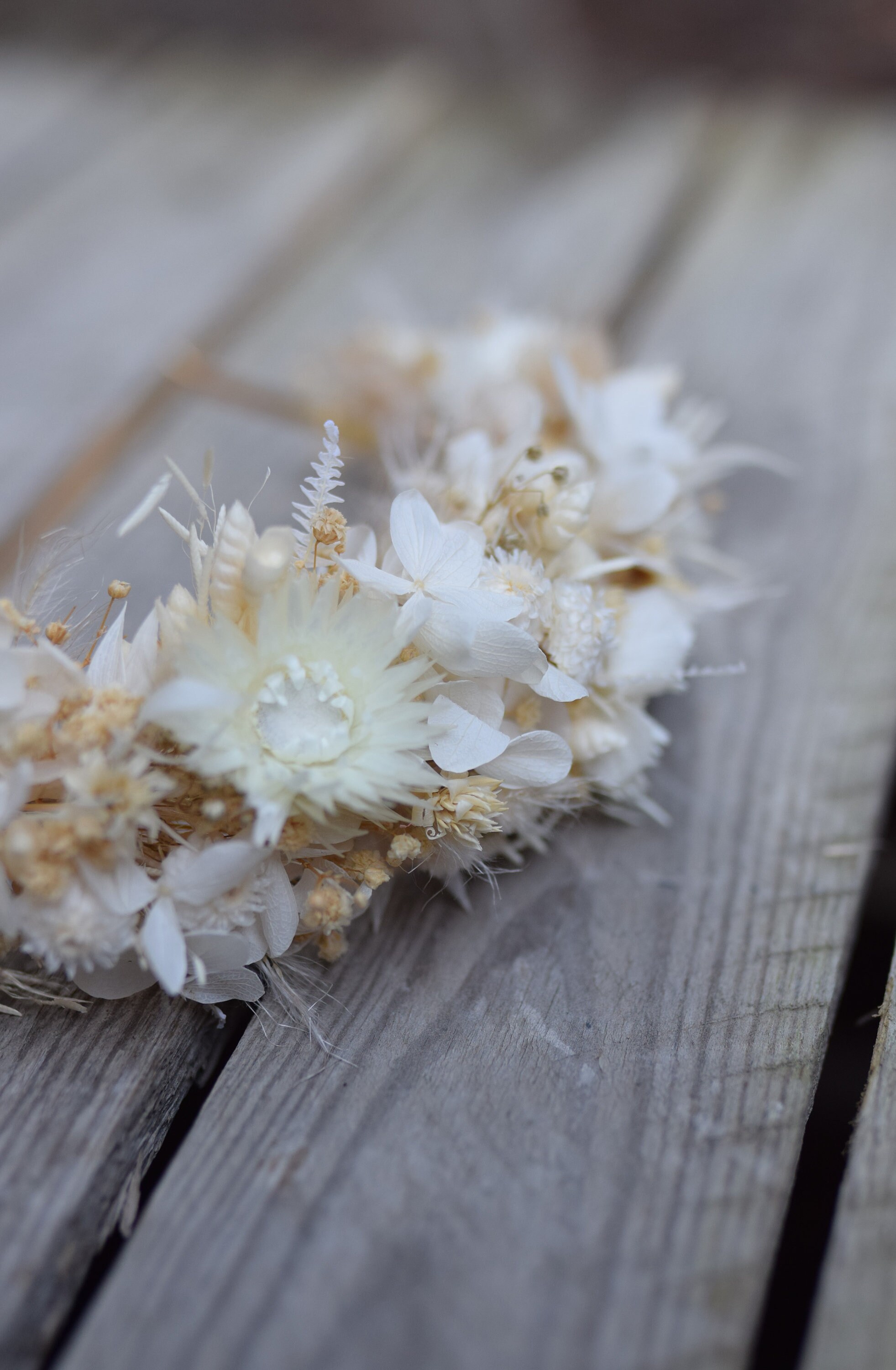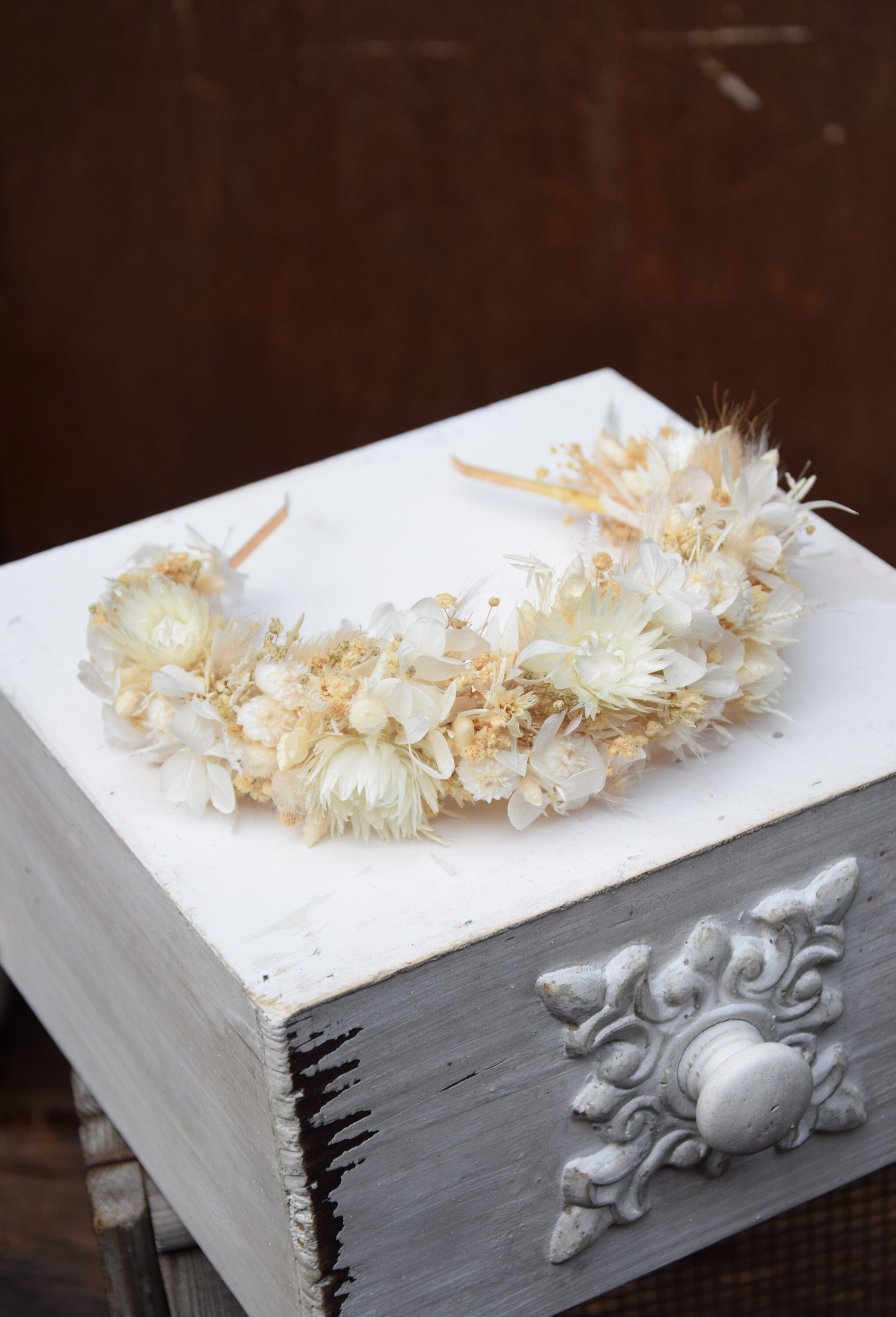 Opaska na głowę z jasnych suszonych i stabilizowancyh kwiatów