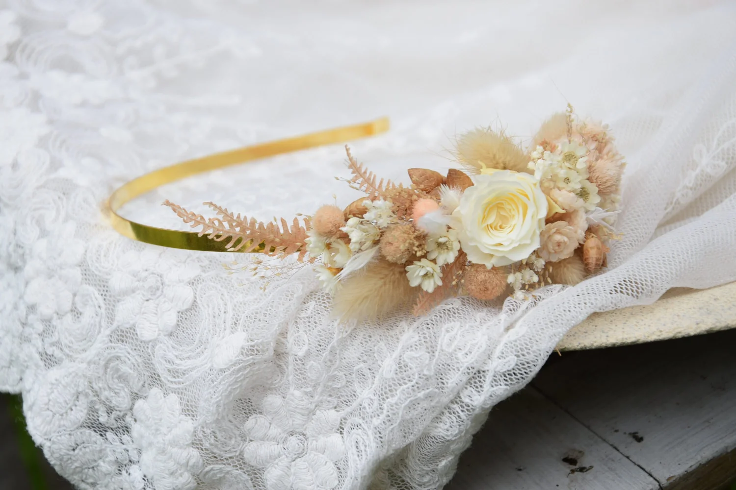 Rustykalna, unikatowa opaska na głowę z suszonych kwiatów to idealny dodatek do stylizacji Panny młodej lub druhny. . Opaska na głowę wykonana jest z niezwykłą dbałością o szczegóły Opaska na głowę to idealna propozycja na ślub, wieczór panieński oraz prezent, sesję zdjęciową, festiwal lub urodziny Baza opaski na głowę jest metalowa Kompozycja wykonana jest z suszonych kwiatów zatem jest trwała. Aby była piękna przez bardzo długi czas wystarczy trzymać ja z dala od deszczu lub wilgoci. Suszone i stabilizowane rośliny są trwałe, pod warunkiem, że są odpowiednio przechowywane , czyli dala od światła słonecznego, aby uniknąć blaknięcia kolorów, źródeł ciepła, ekstremalnego zimna i wilgoci. Staram się tworzyć moje projekty kwiatowe tak, aby wyglądały jak na zdjęciu, ale ponieważ używam kwiatów naturalnych, mogą występować różnice w odcieniu. Jeśli chciałabyś zamówić więcej sztuk niż widzisz na liście, napisz do mnie , a ja z przyjemnością stworzę wybrana ilość dla Ciebie. Wiele z moich produktów to projekty indywidualne które tworzę na Wasze specjalne zamówienie. Byłabym bardzo szczęśliwa mogąc pracować z tobą, aby stworzyć dokładnie to, czego szukasz! Inne moje prace możesz też znaleźć na Instagramie i Pintereście https://www.instagram.com/projekt_wianki/ https://pl.pinterest.com/pwianki/ Dziękuję za wizytę w naszym sklepie.