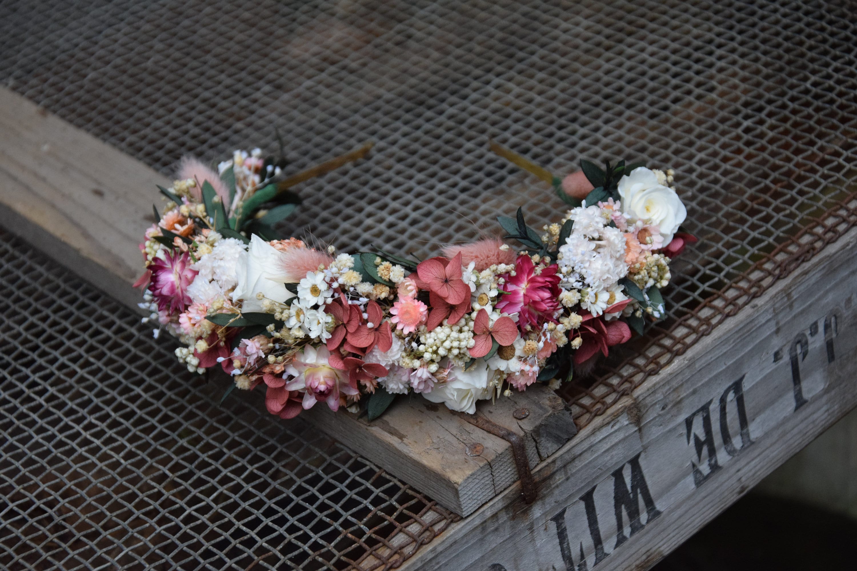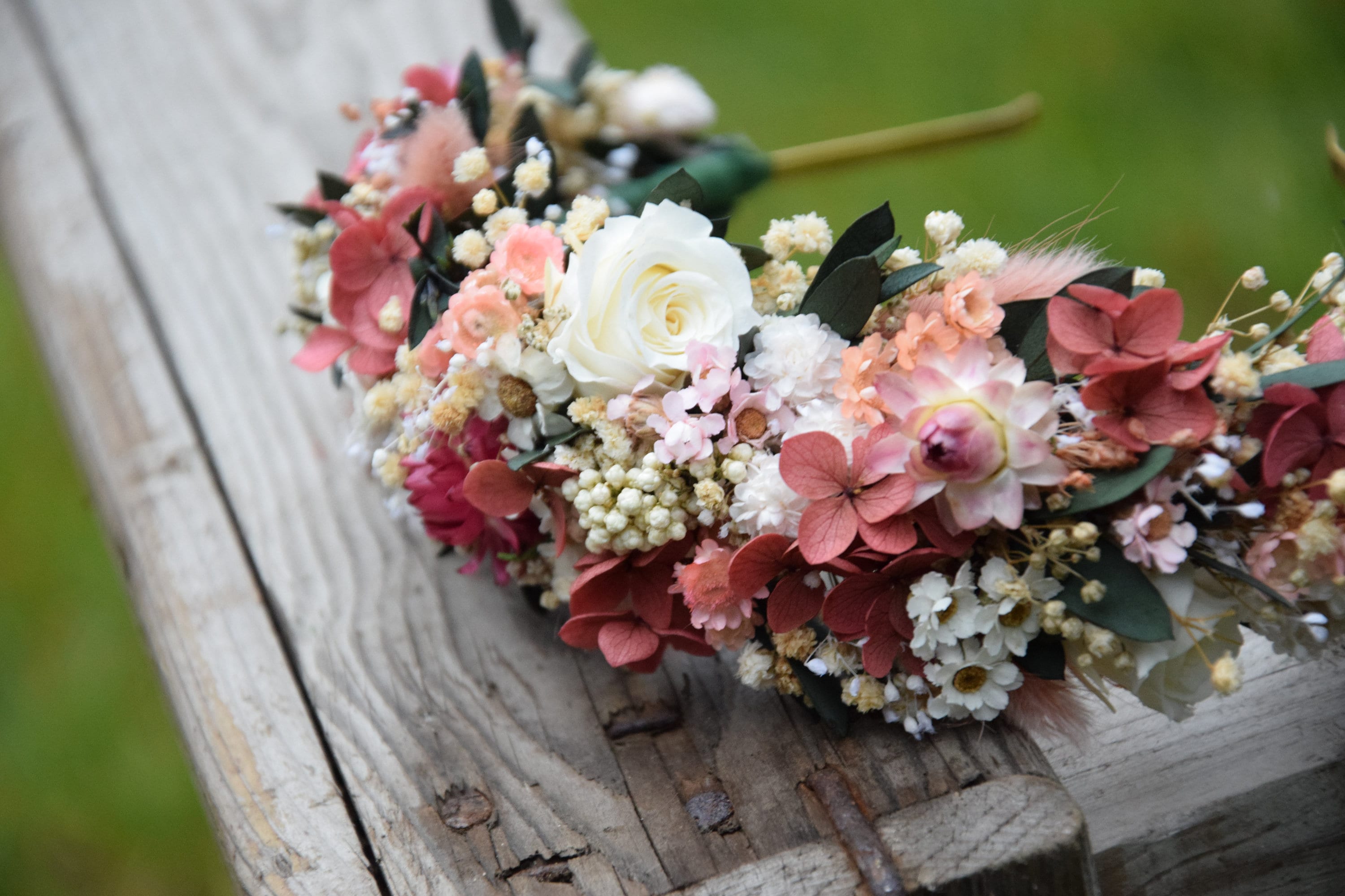 Piękna, unikatowa ślubna opaska na głowę zrobiona z suszonych i stabilizowanych kwiatów