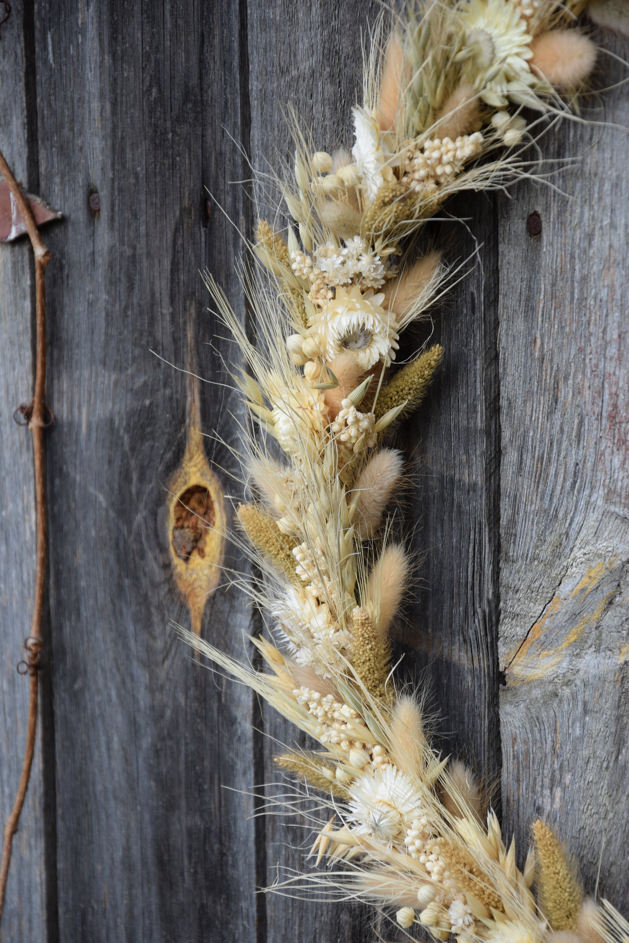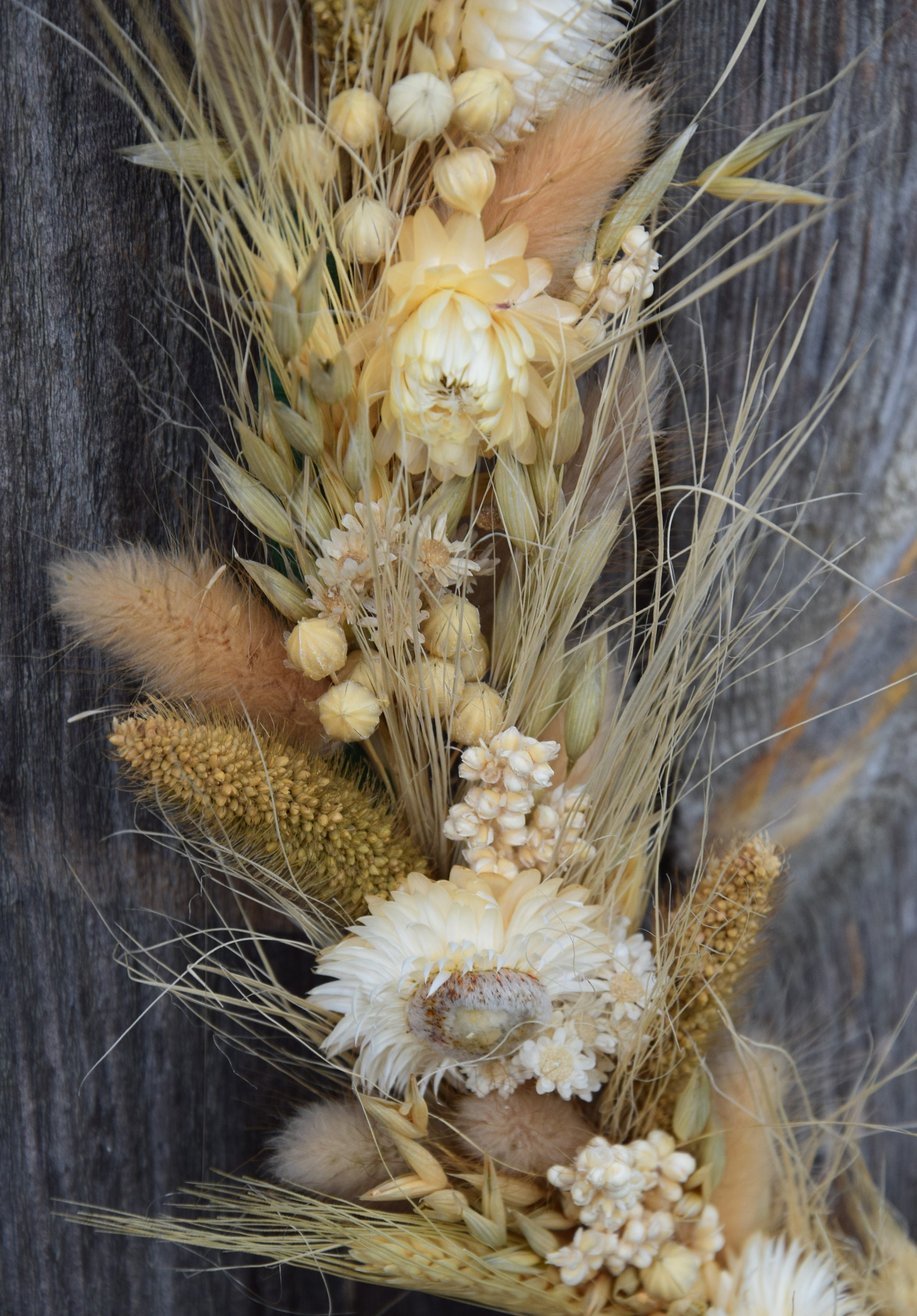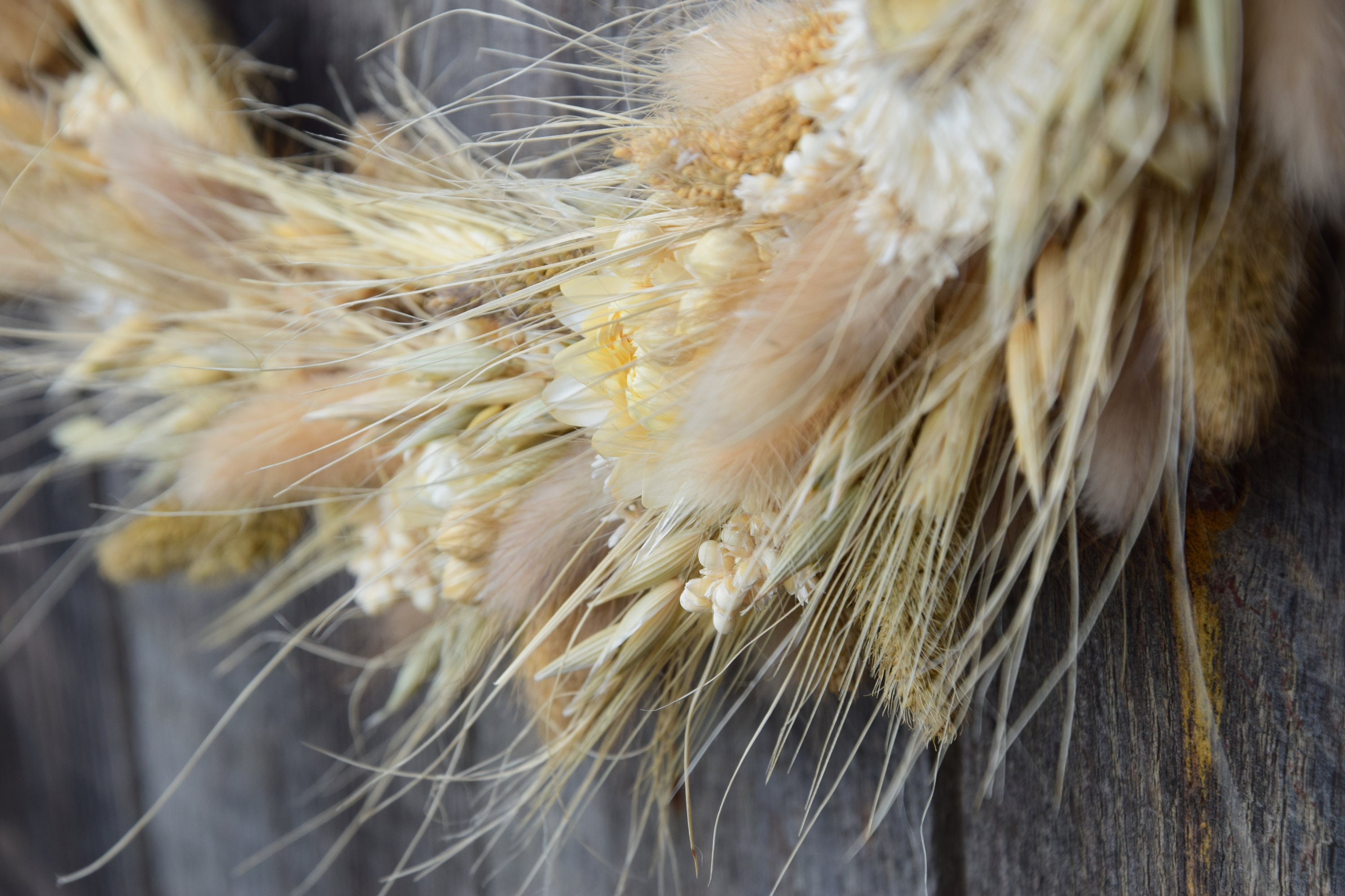 Ten unikatowy, wiosenny wieniec będzie idealną dekoracją do Twojego domu lub biura. Sprawdzi się również jako piękny dodatek weselnego przyjęcia, imprezy urodzinowej lub innej uroczystości. Wieniec został ręcznie wykonany z suszonych zbóż i kwiatów na obręczy oplecionej jutowym sznurkiem. Aby był piękny przez wiele lat wystarczy trzymać go z dala od deszczu lub wilgoci. Ze względu na ręcznie robiony charakter moich wieńców, każdy jest wyjątkowy i niepowtarzalny. Średnica wieńca to 40 cm / 16. Jeśli chciałbyś zamówić więcej sztuk niż widzisz na liście, napisz do mnie , a ja z przyjemnością stworzę wybrana ilość dla Ciebie. Mogę też wykonać taki wianek w innym rozmiarze. Wiele z moich produktów to projekty indywidualne które tworzę na Wasze specjalne zamówienie. Byłabym bardzo szczęśliwa mogąc pracować z tobą, aby stworzyć dokładnie to, czego szukasz! Dziękuję za wizytę w naszym sklepie.