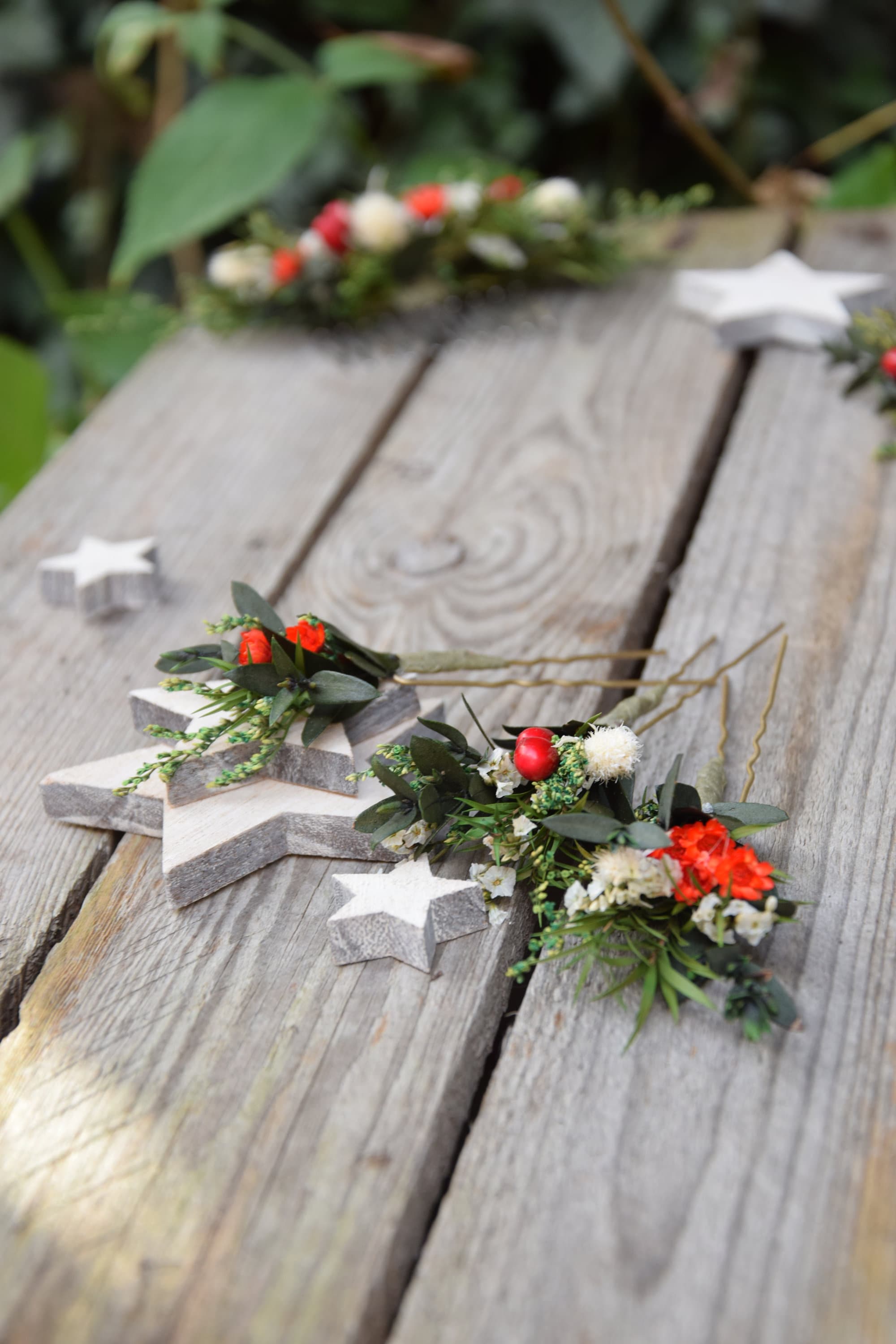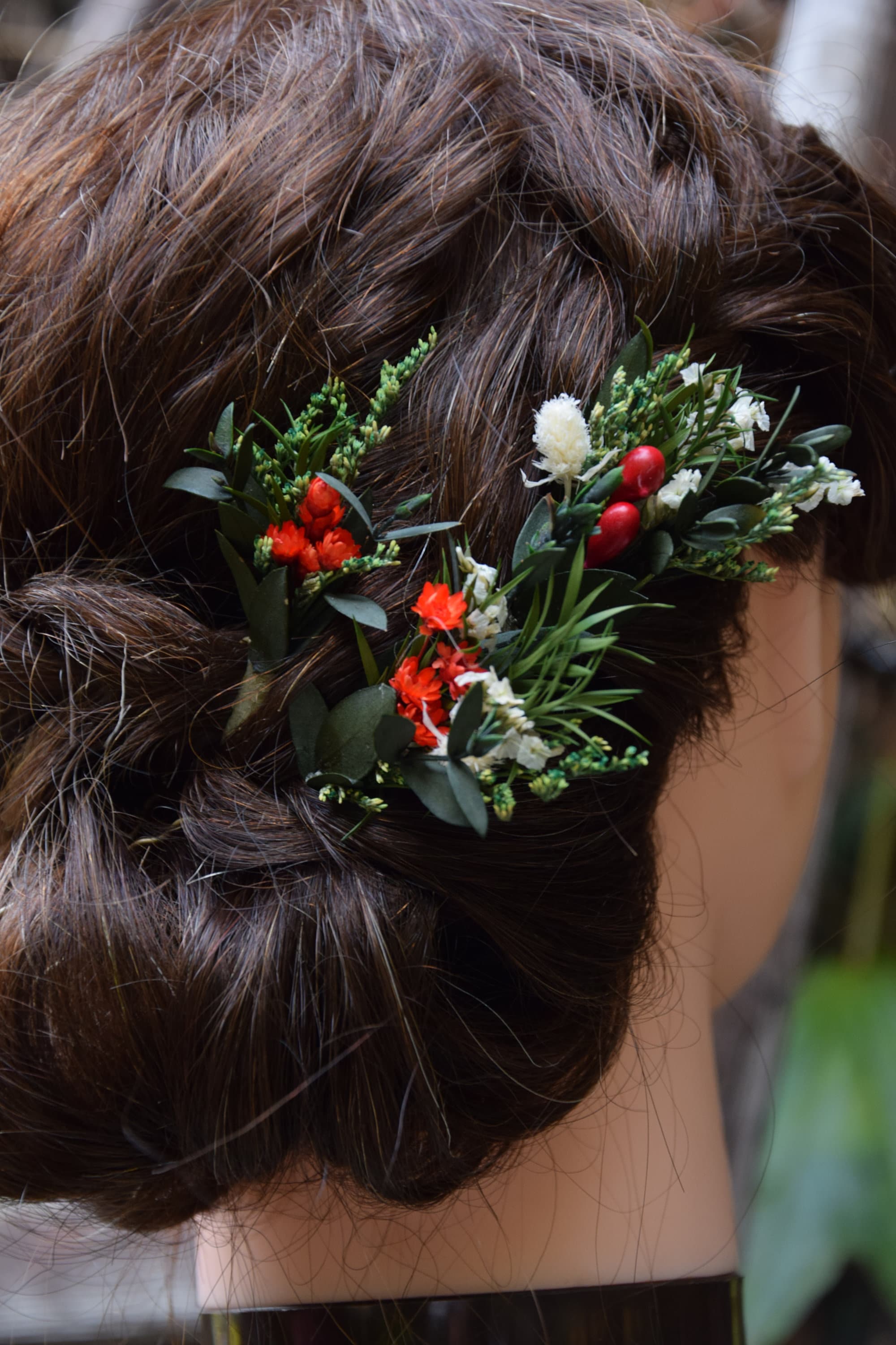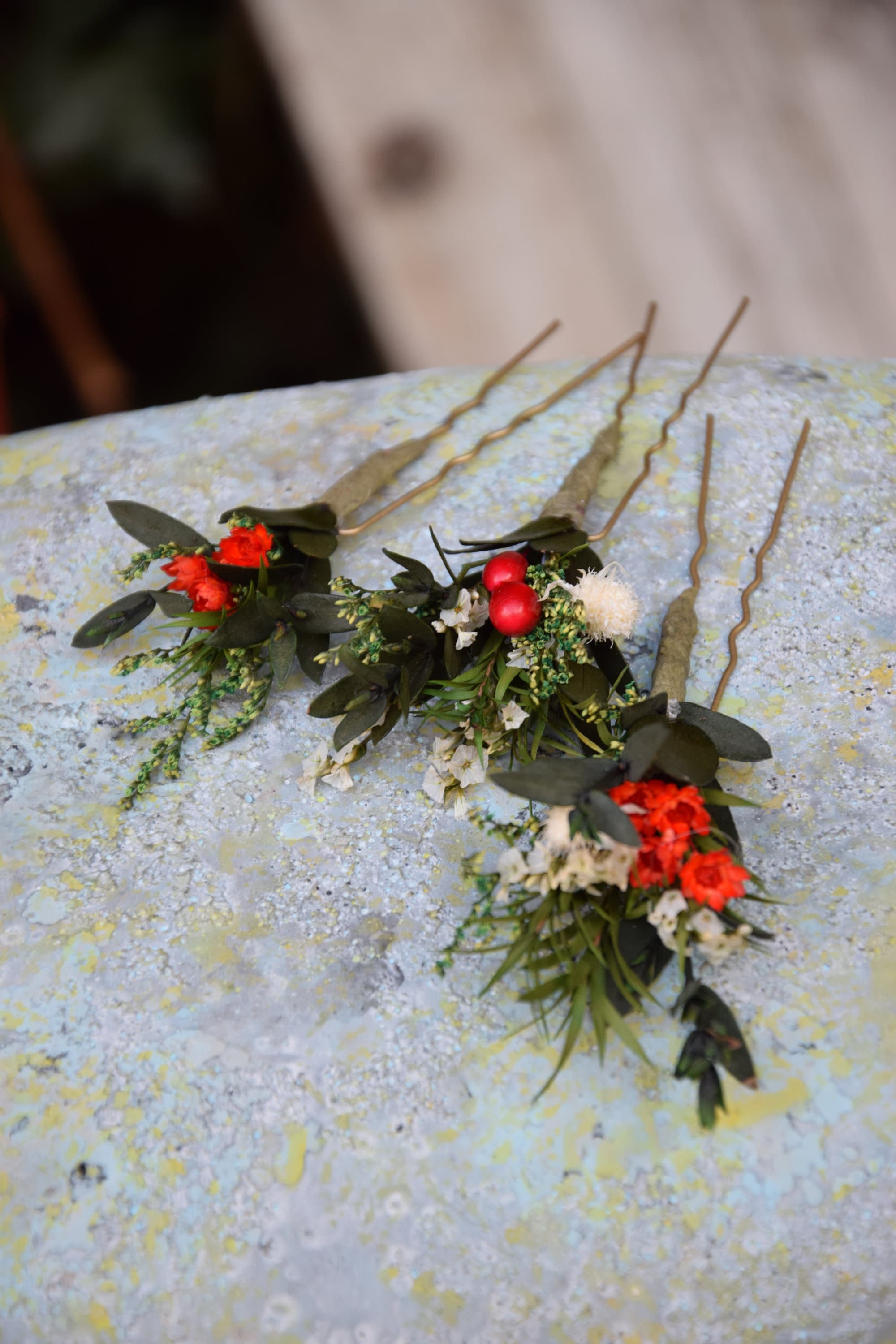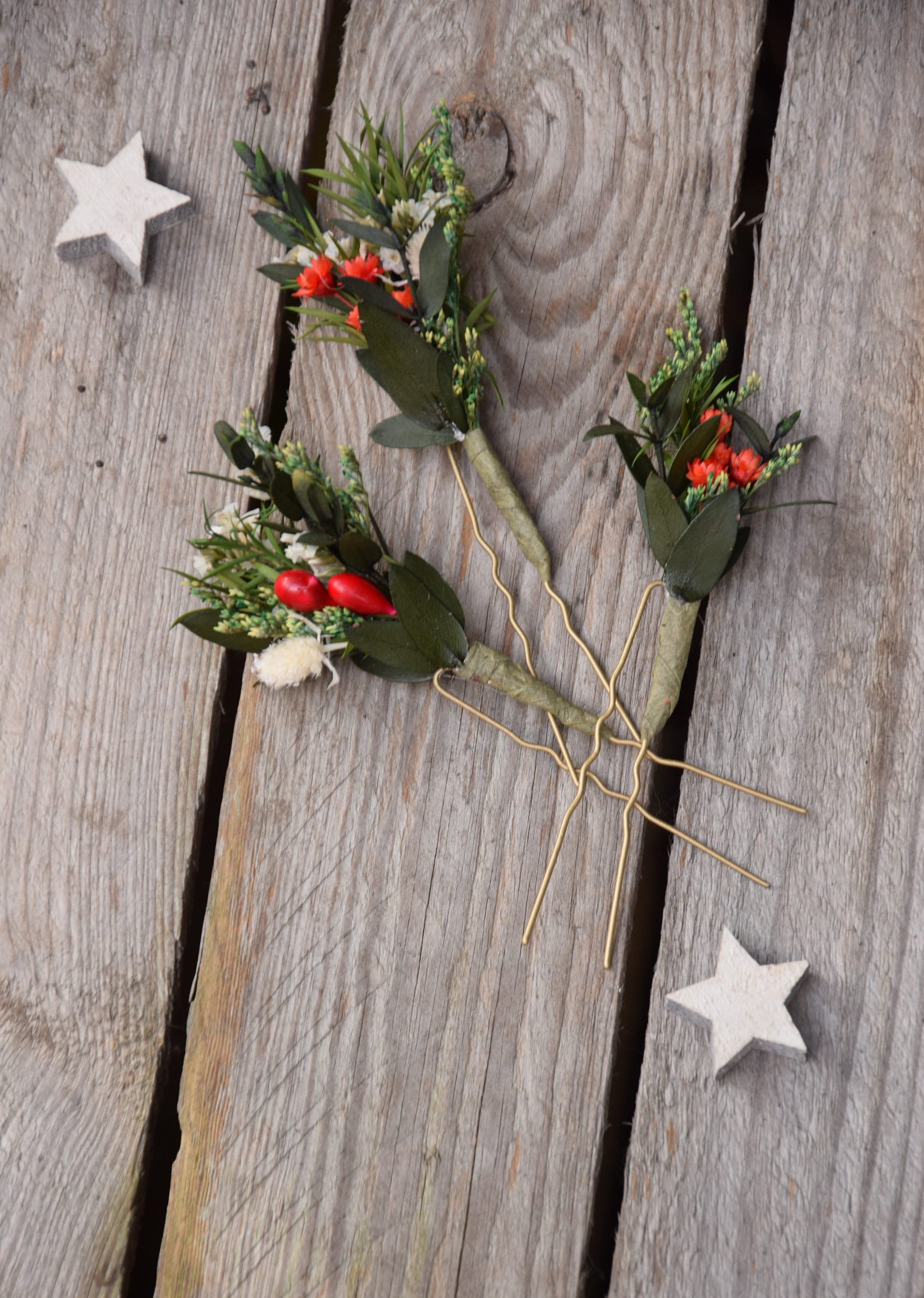 Witaj w naszym sklepie, gdzie znajdziesz wyjątkowe rustykalne wsuwki do włosów z niezwykłymi, stabilizowanymi kwiatami w pięknych, tradycyjnych, świątecznych barwach.