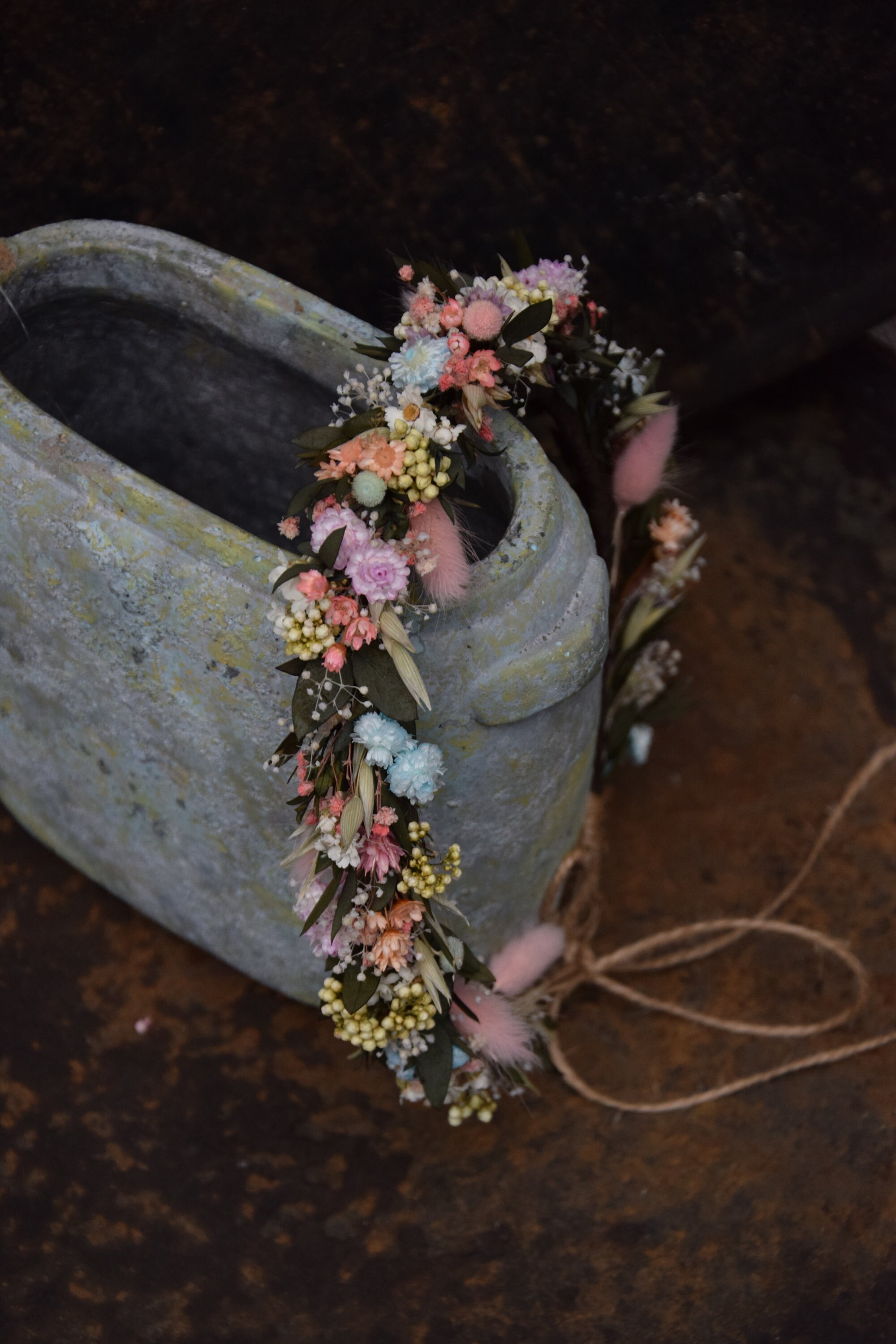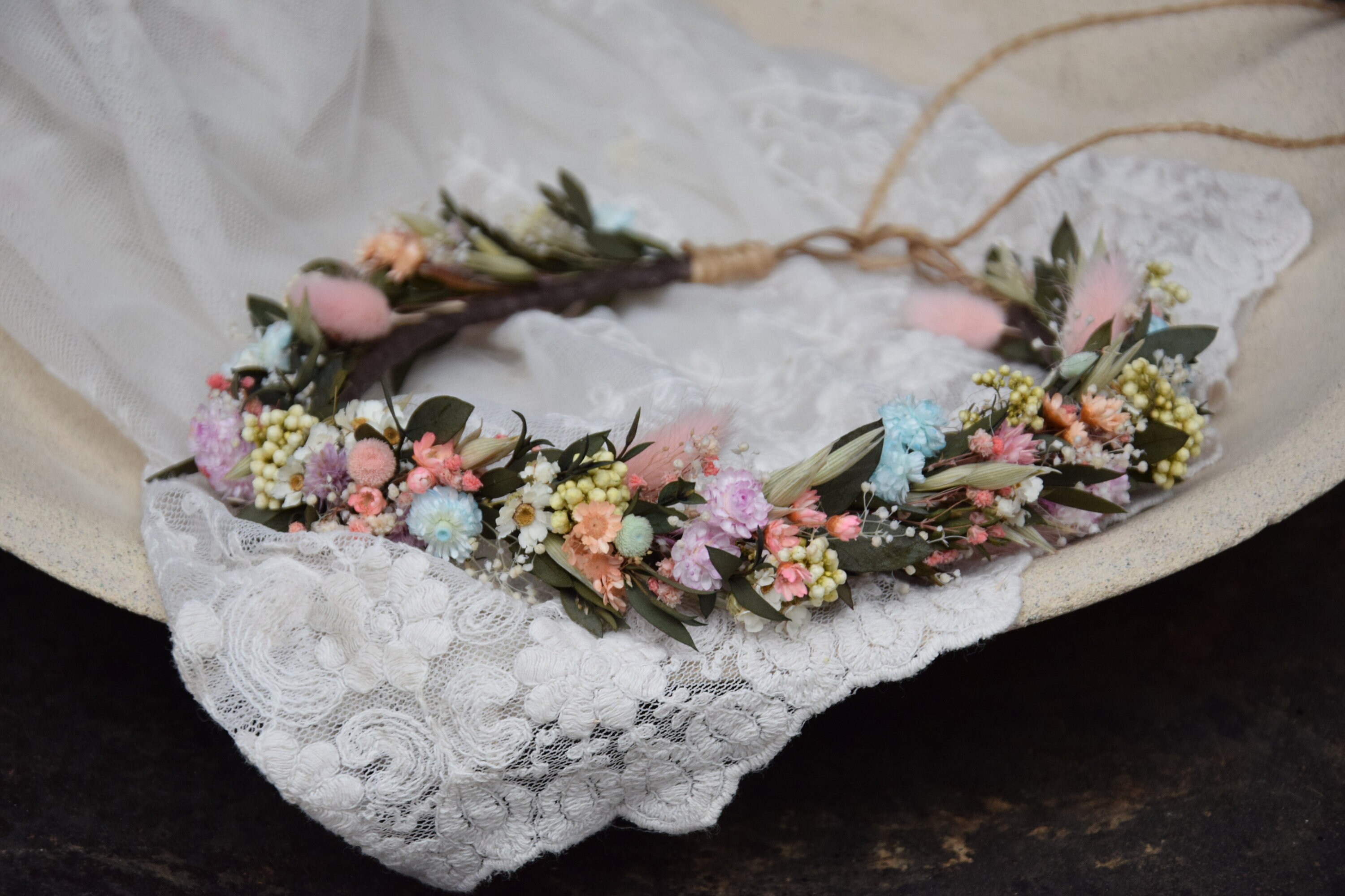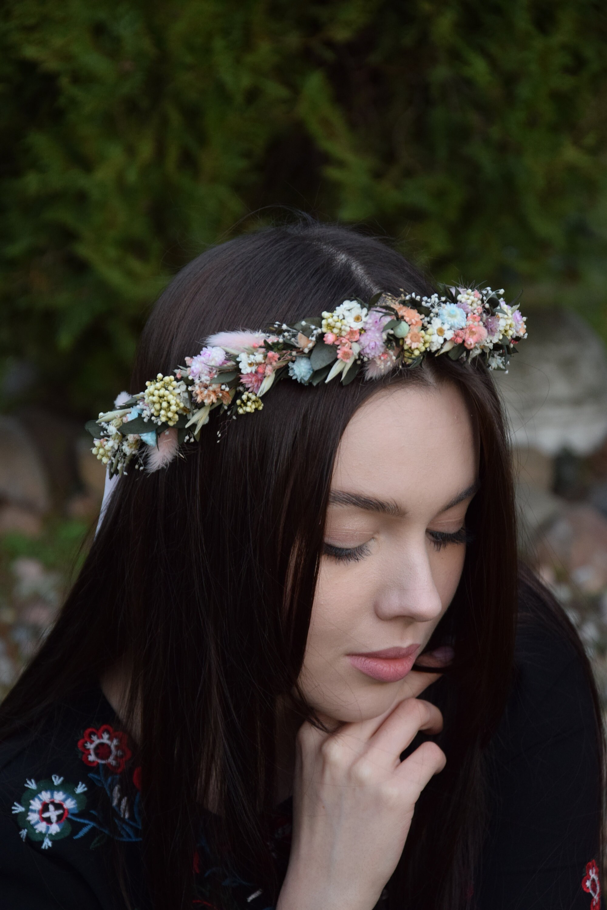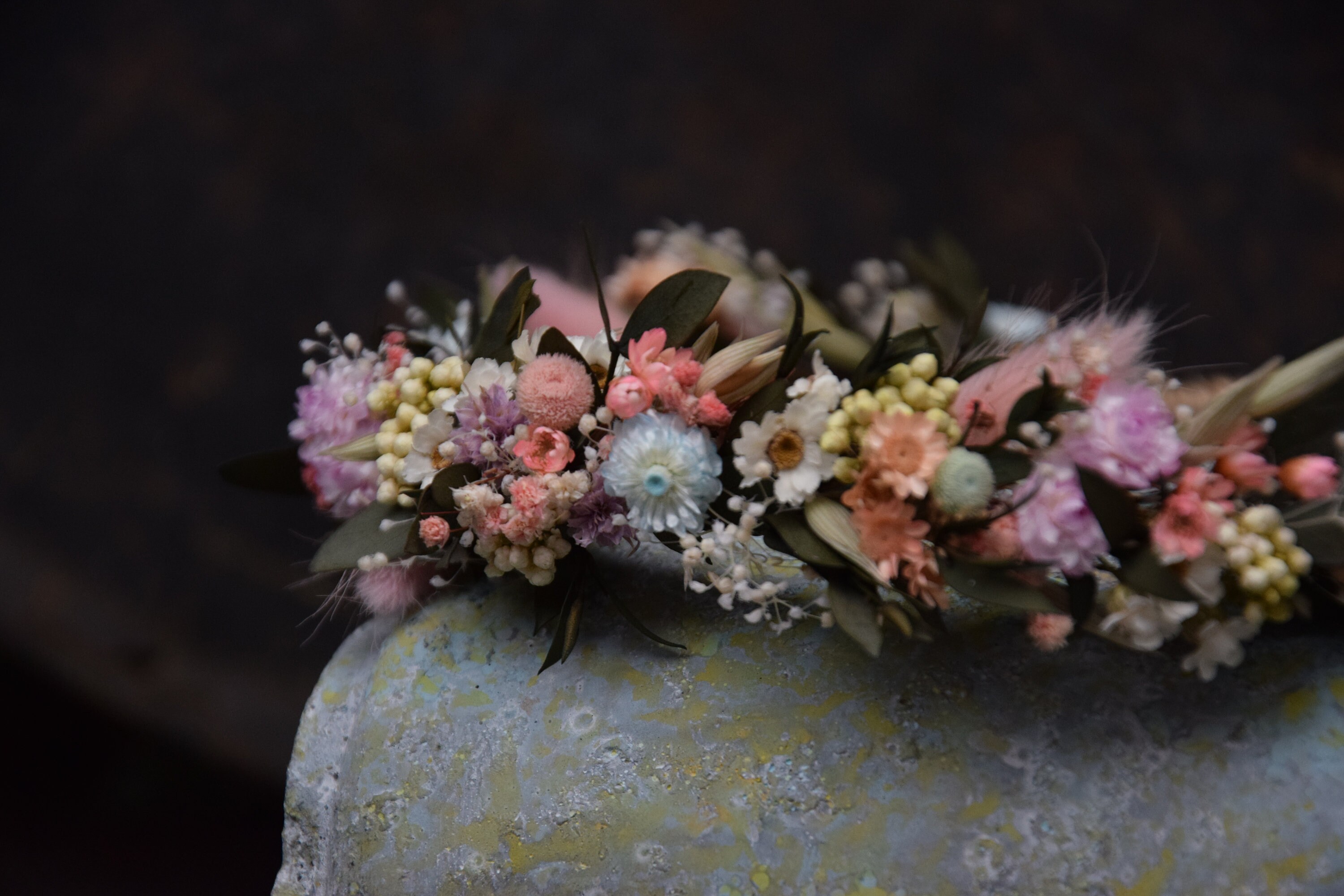 Wianek na głowę z suszonych i stabilizowanych kwiatów