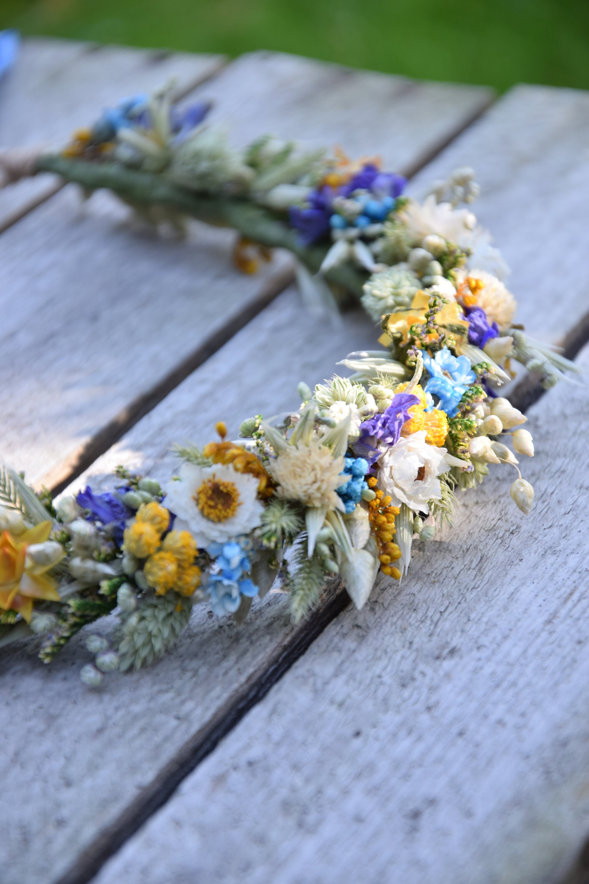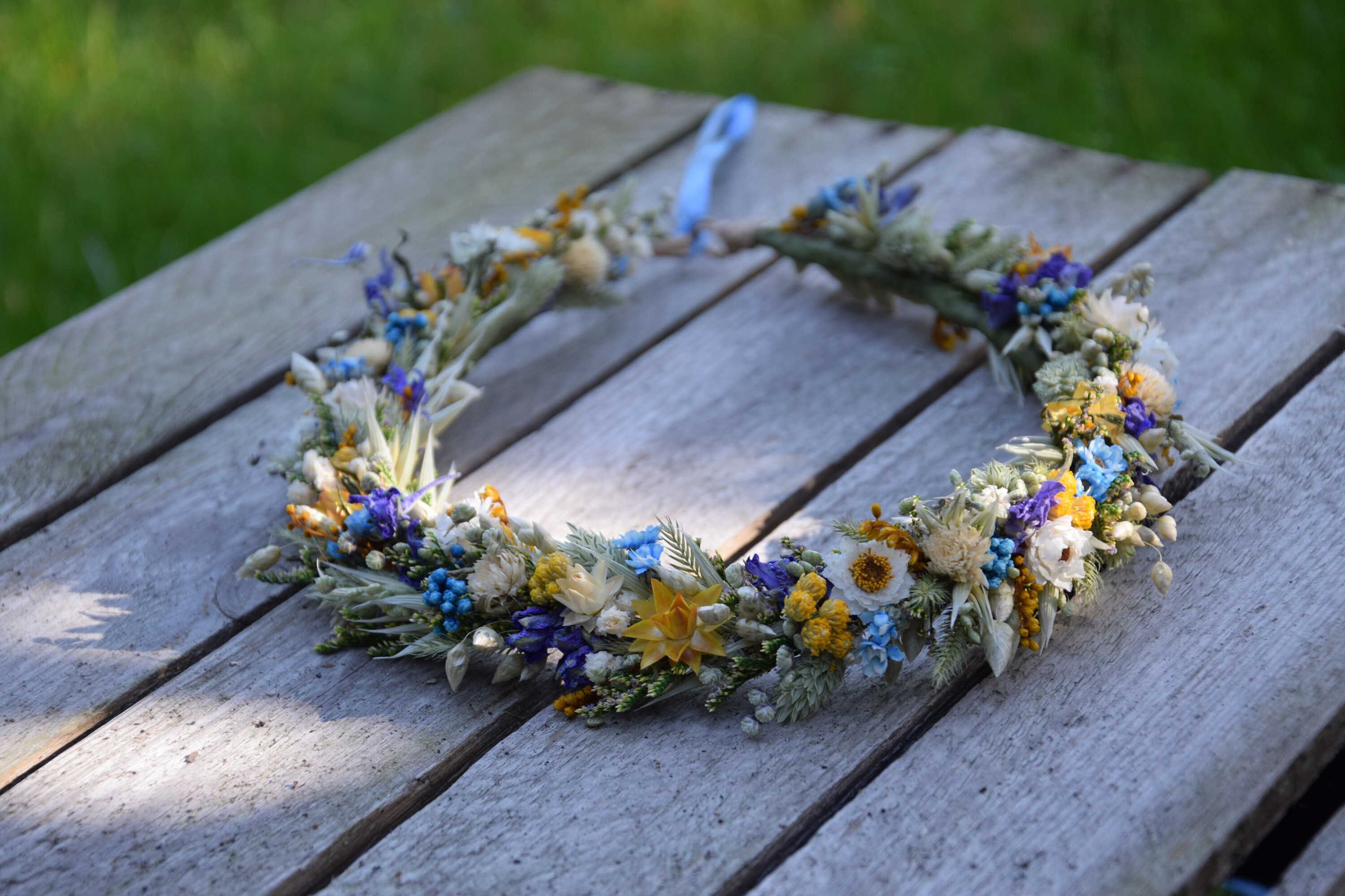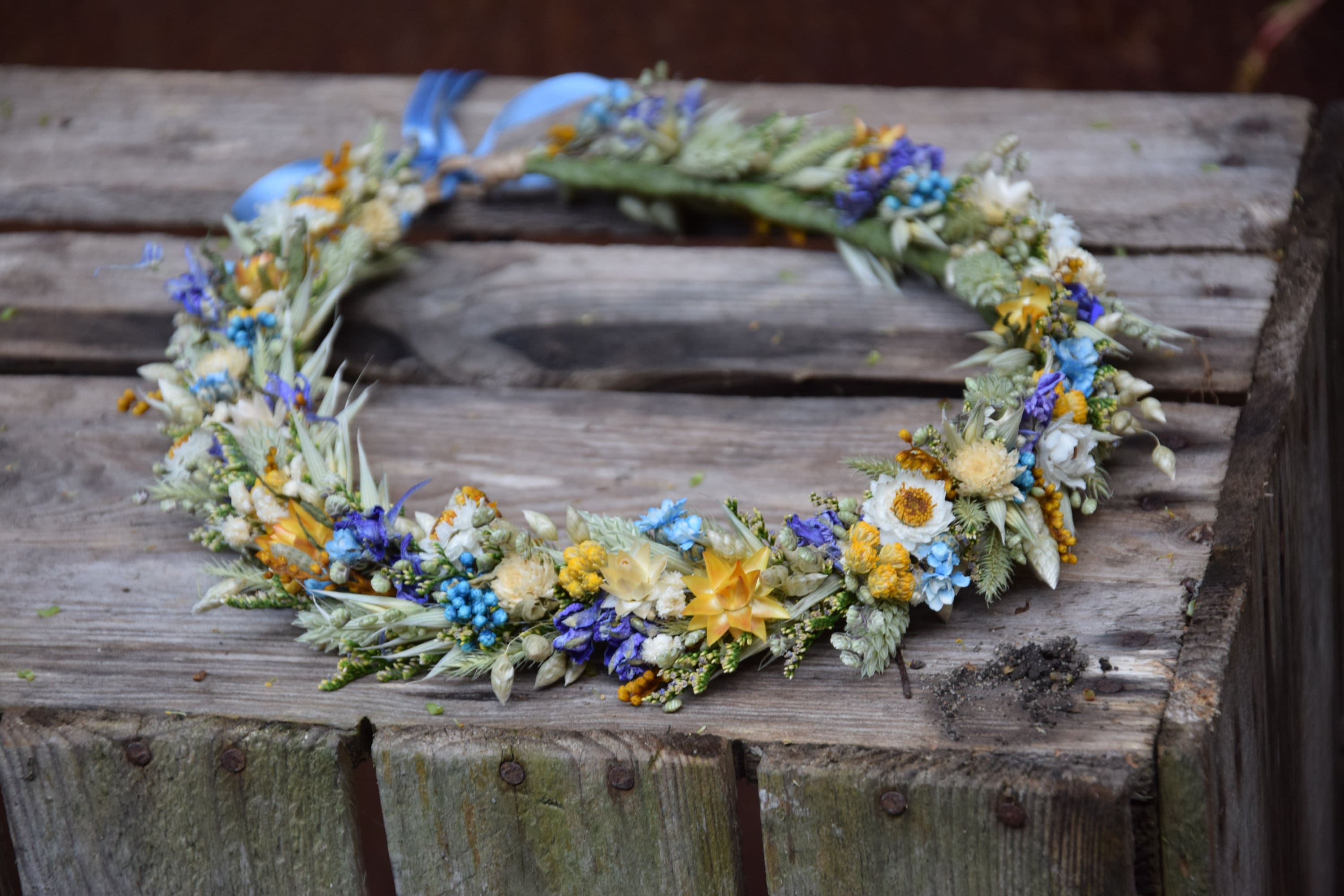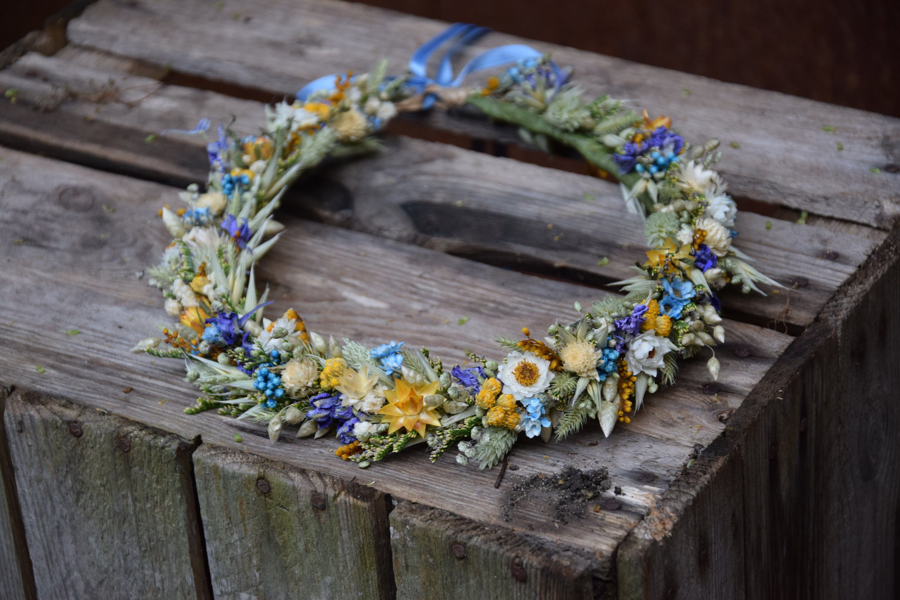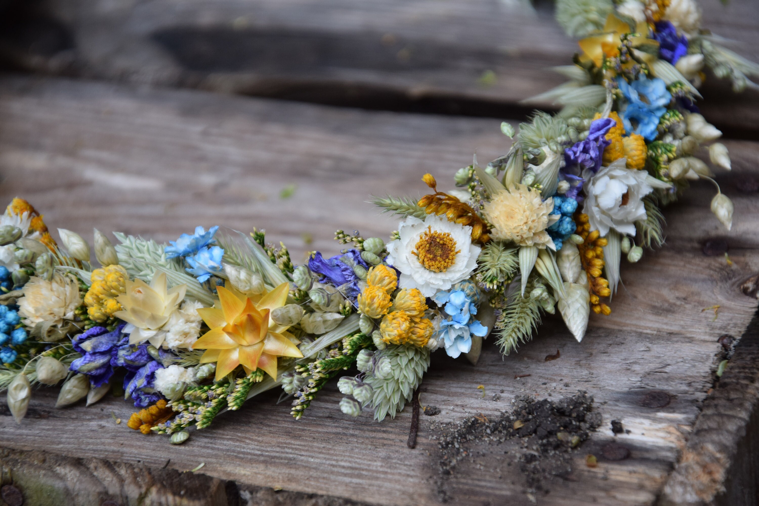 Wianek na głowę z suszonych i stabilizowanych kwiatów