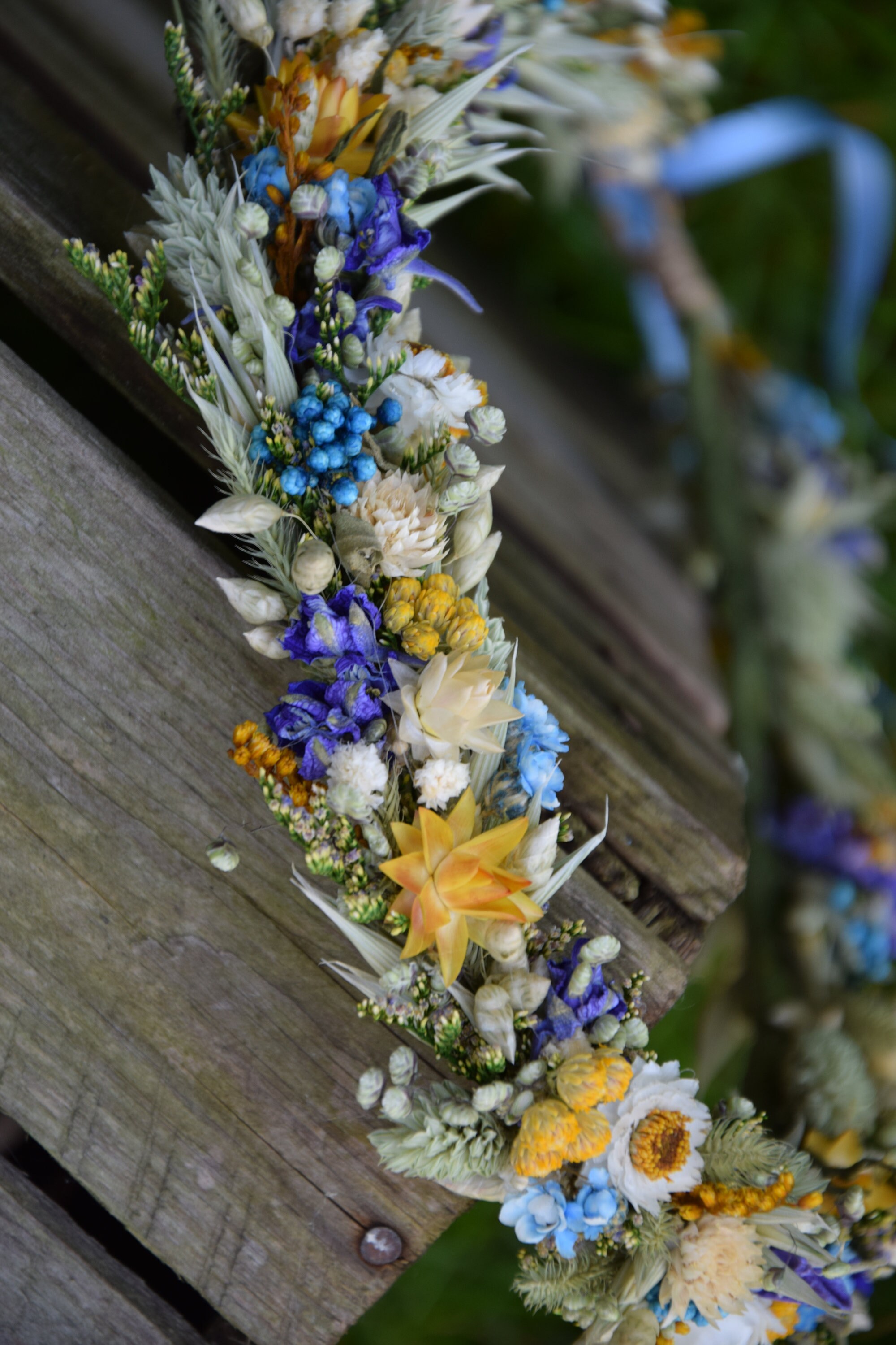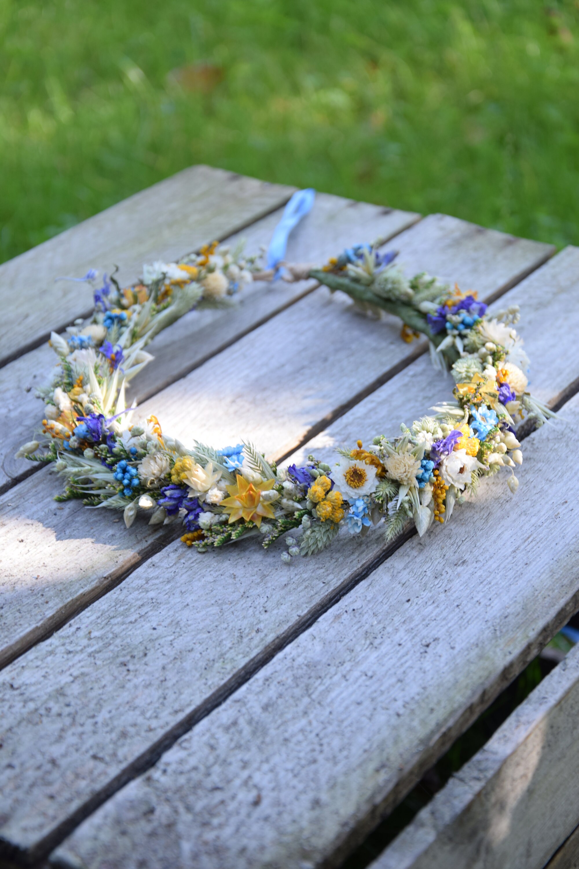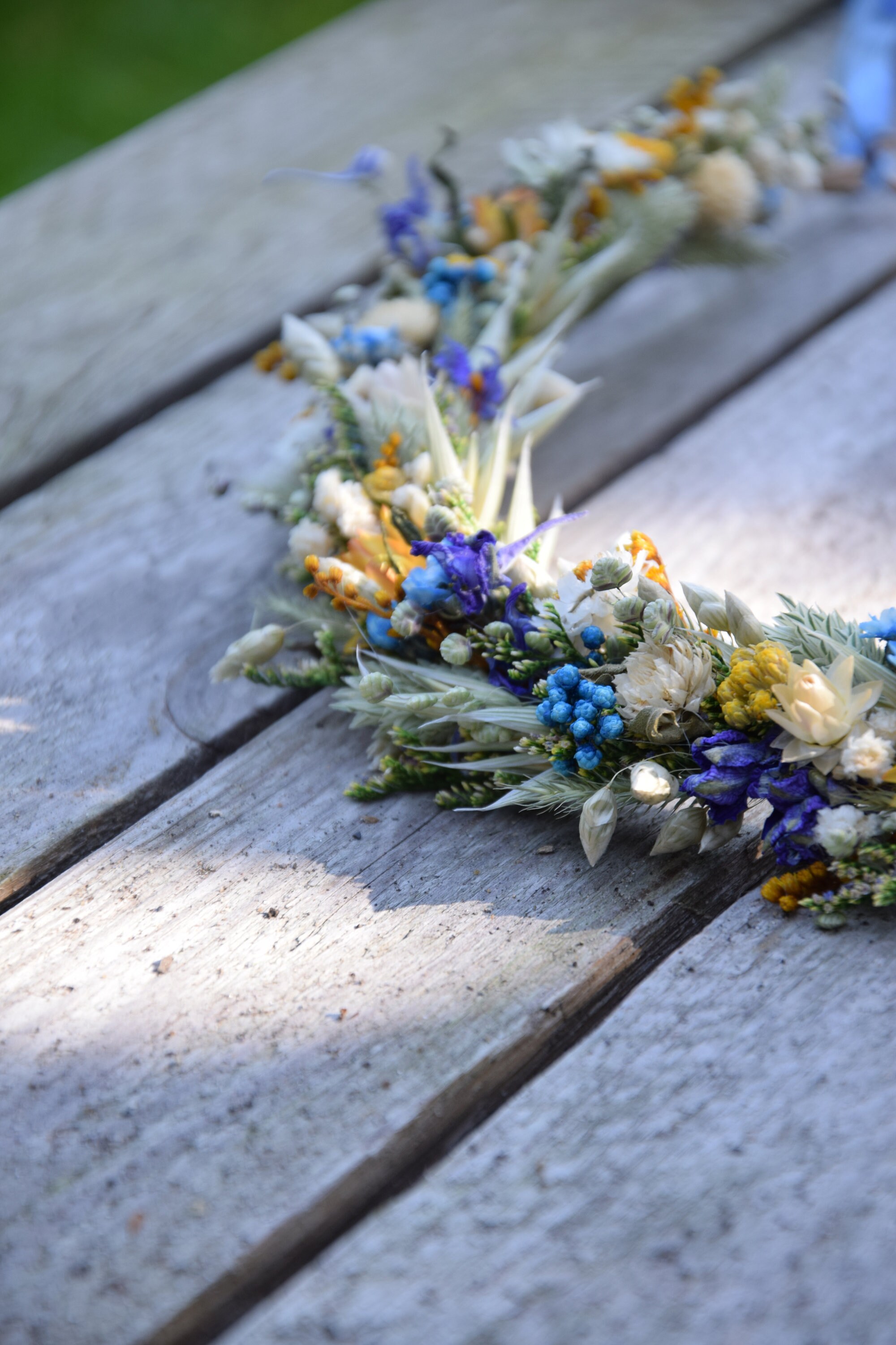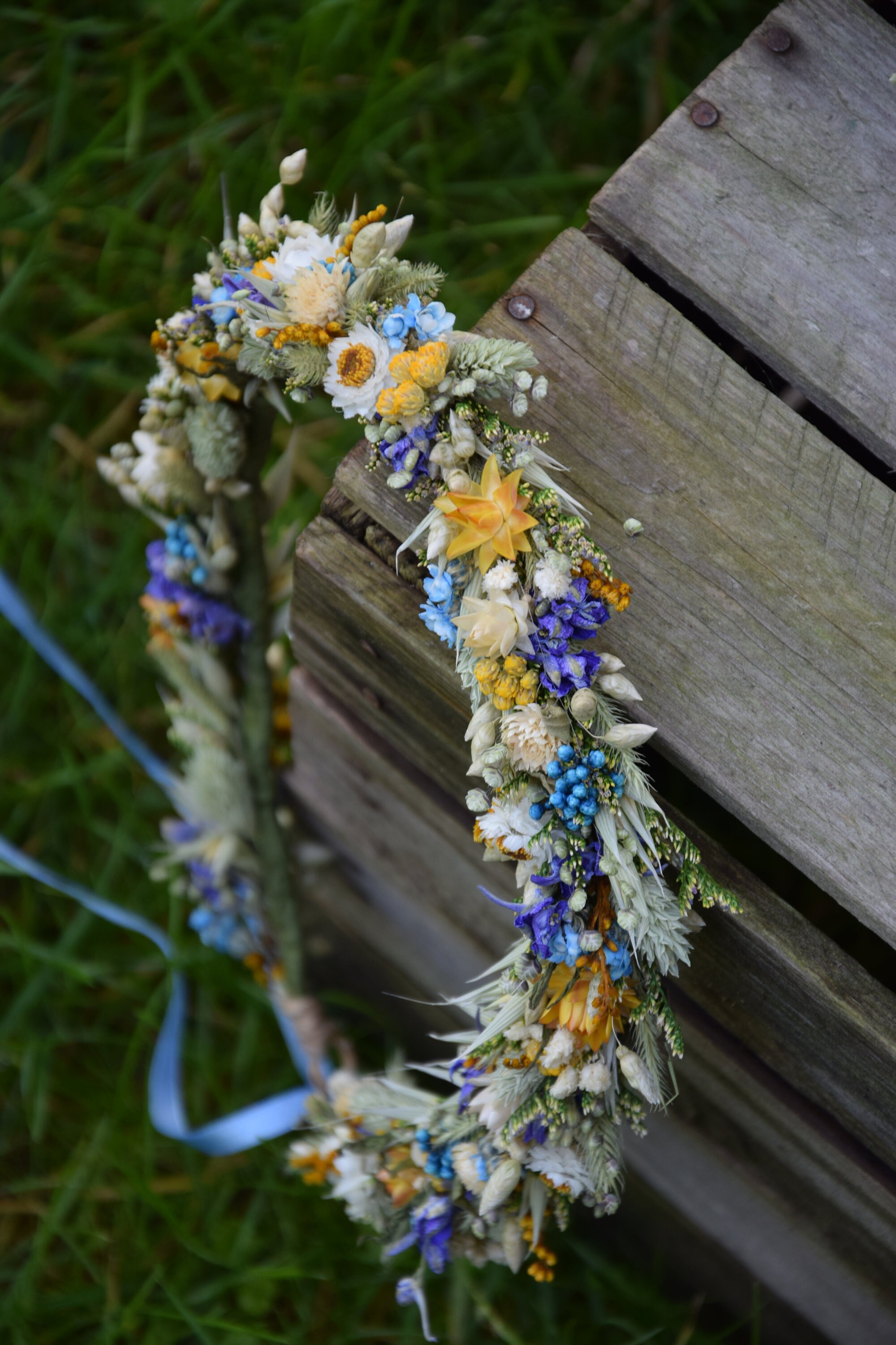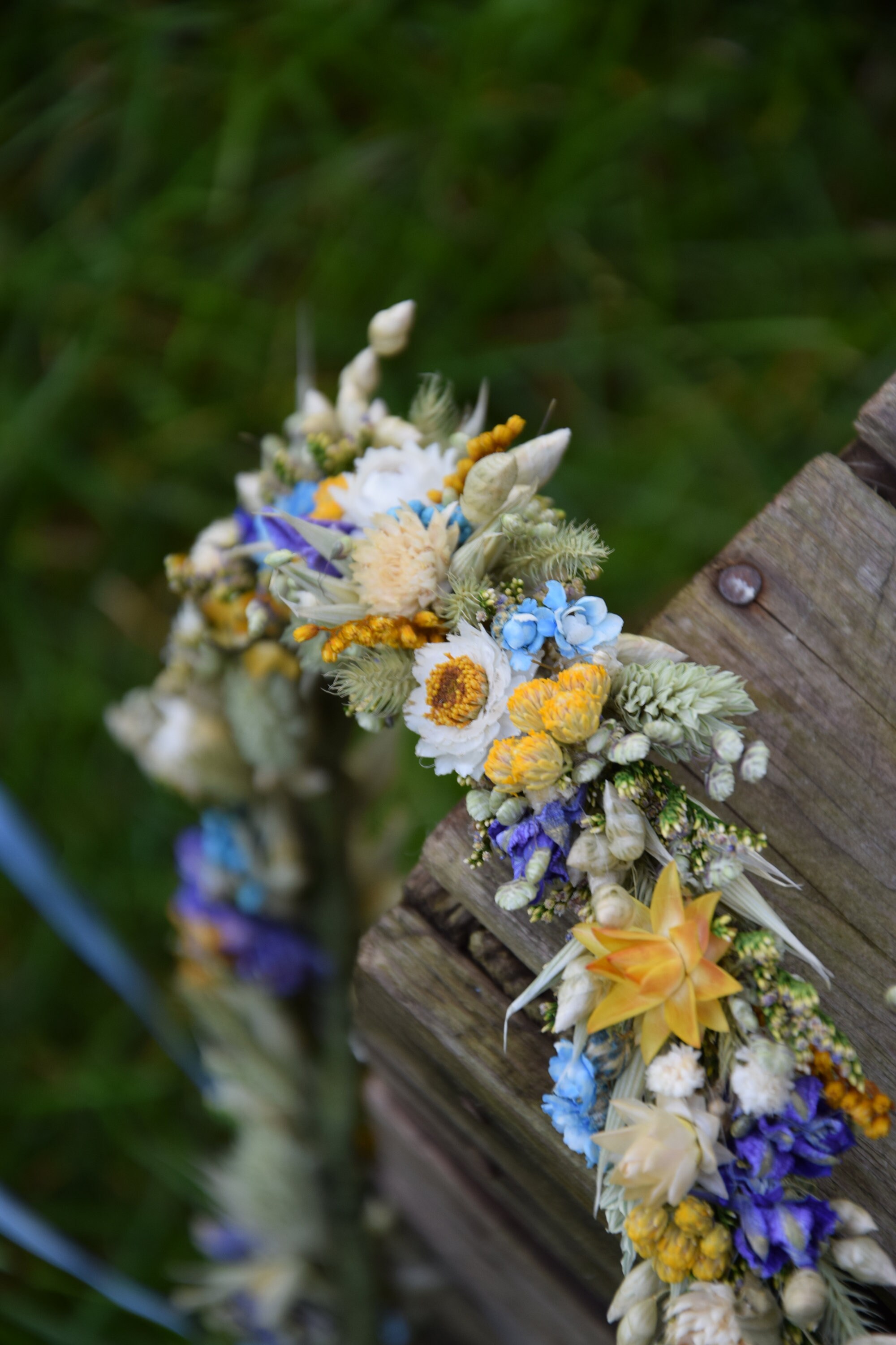 Wianek na głowę z suszonych i stabilizowanych kwiatów