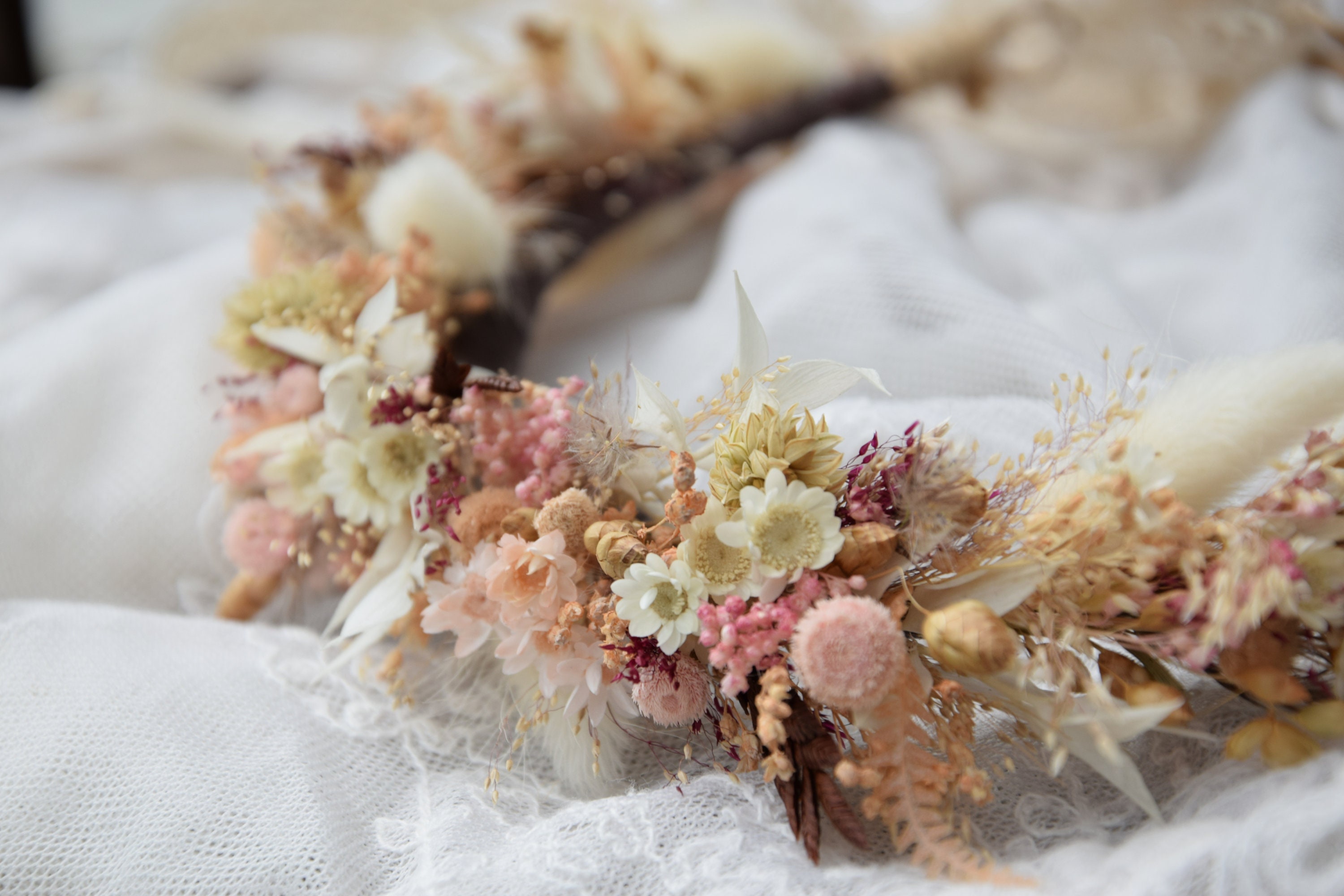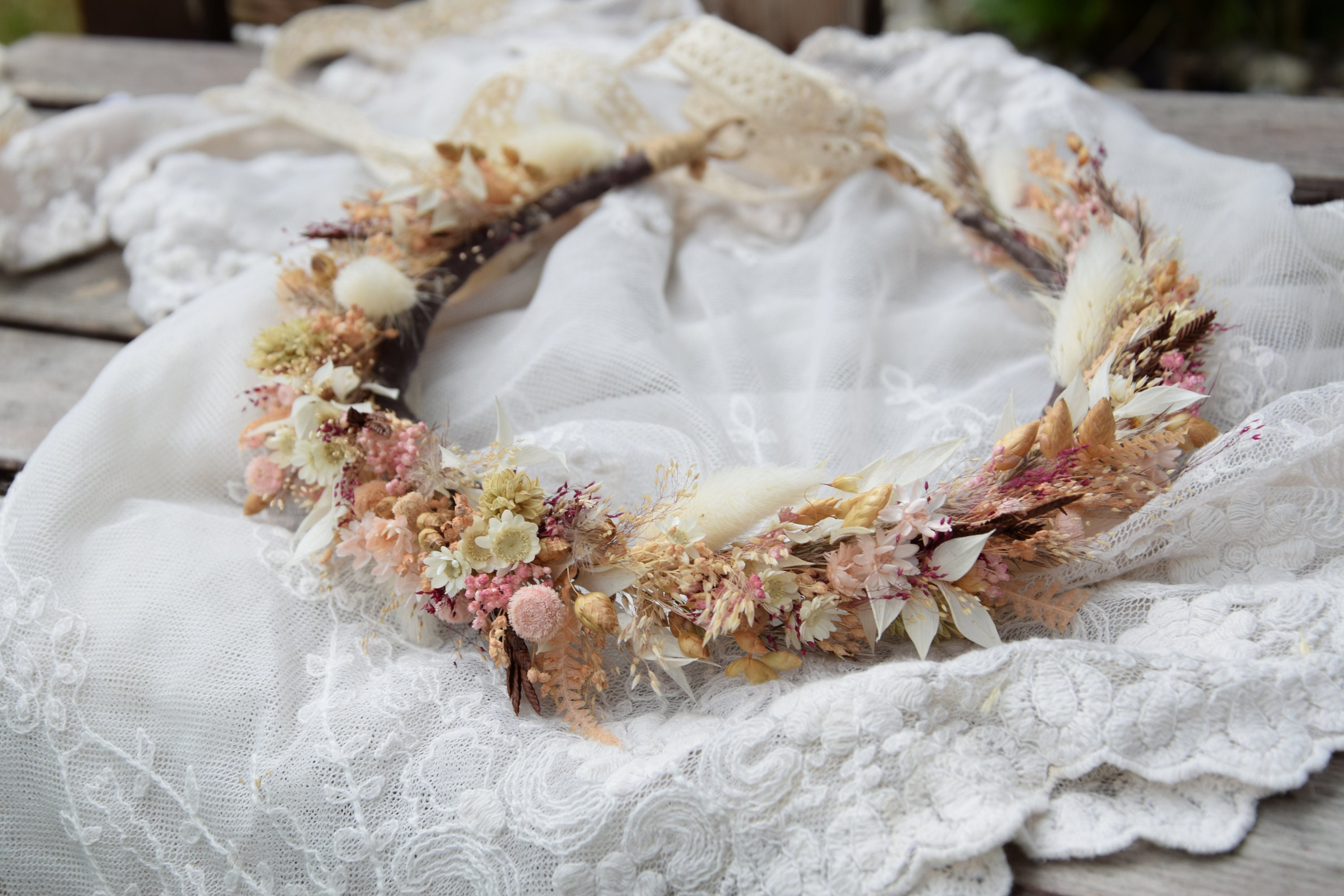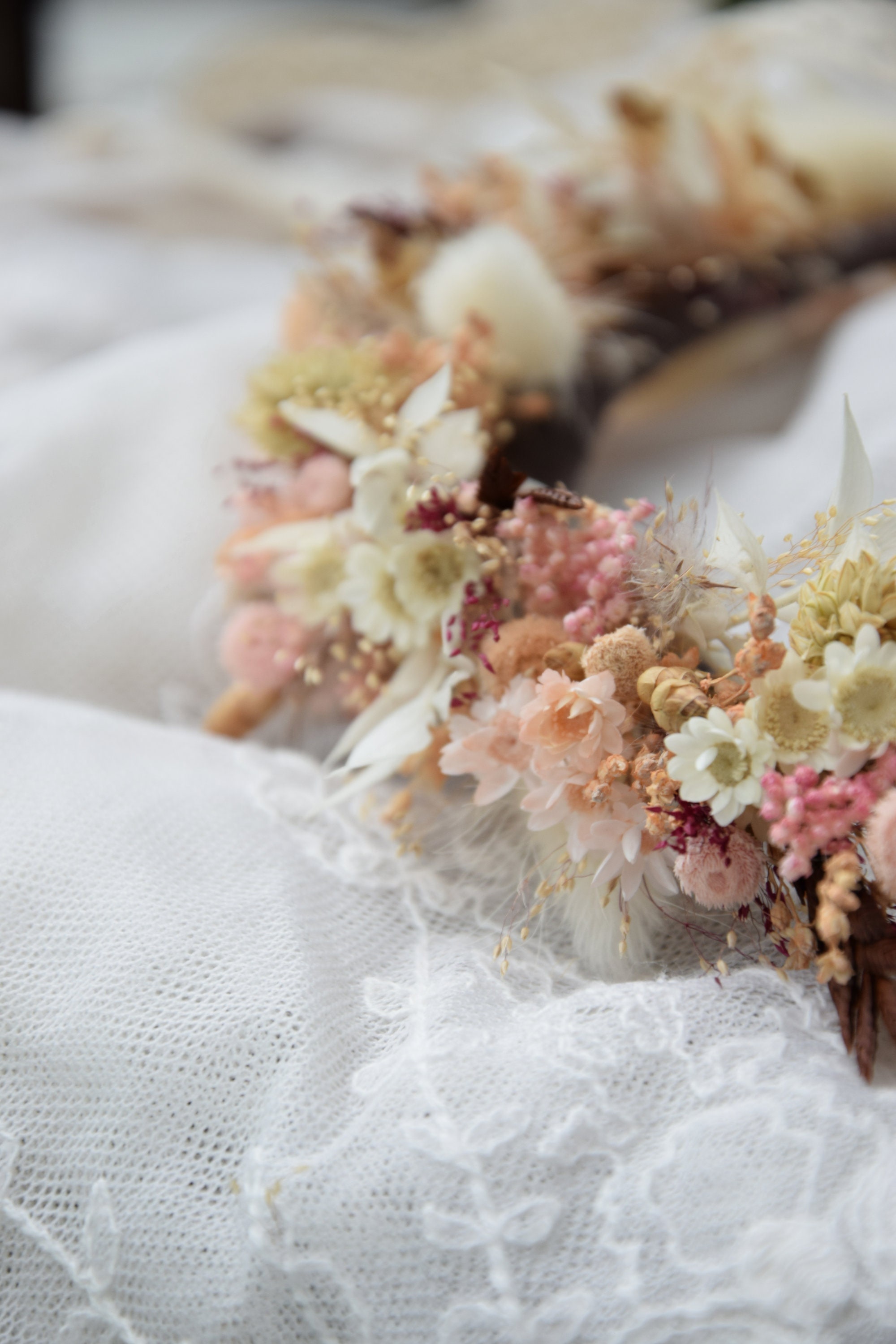 Wianek na głowę z suszonych i stabilizowanych kwiatów