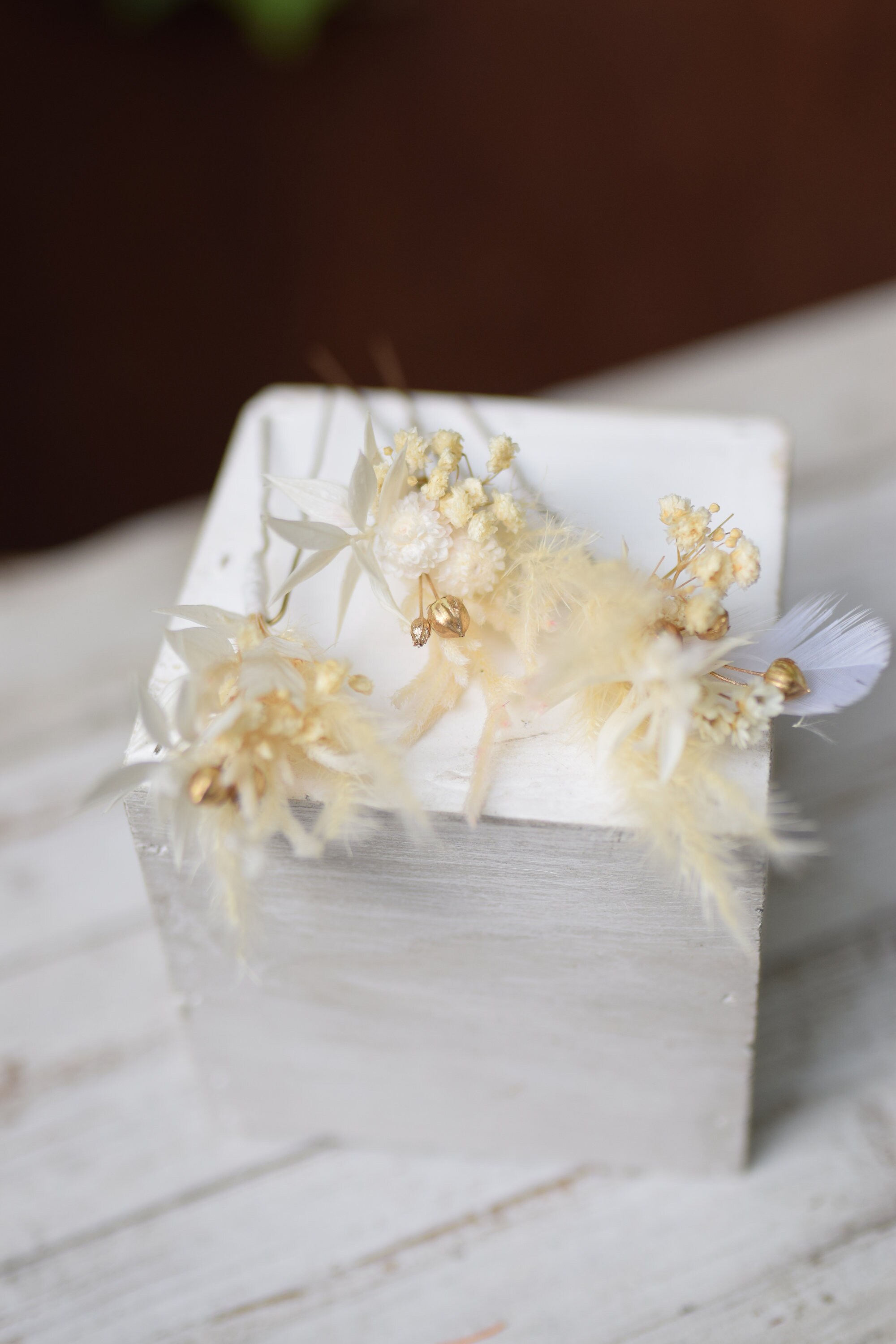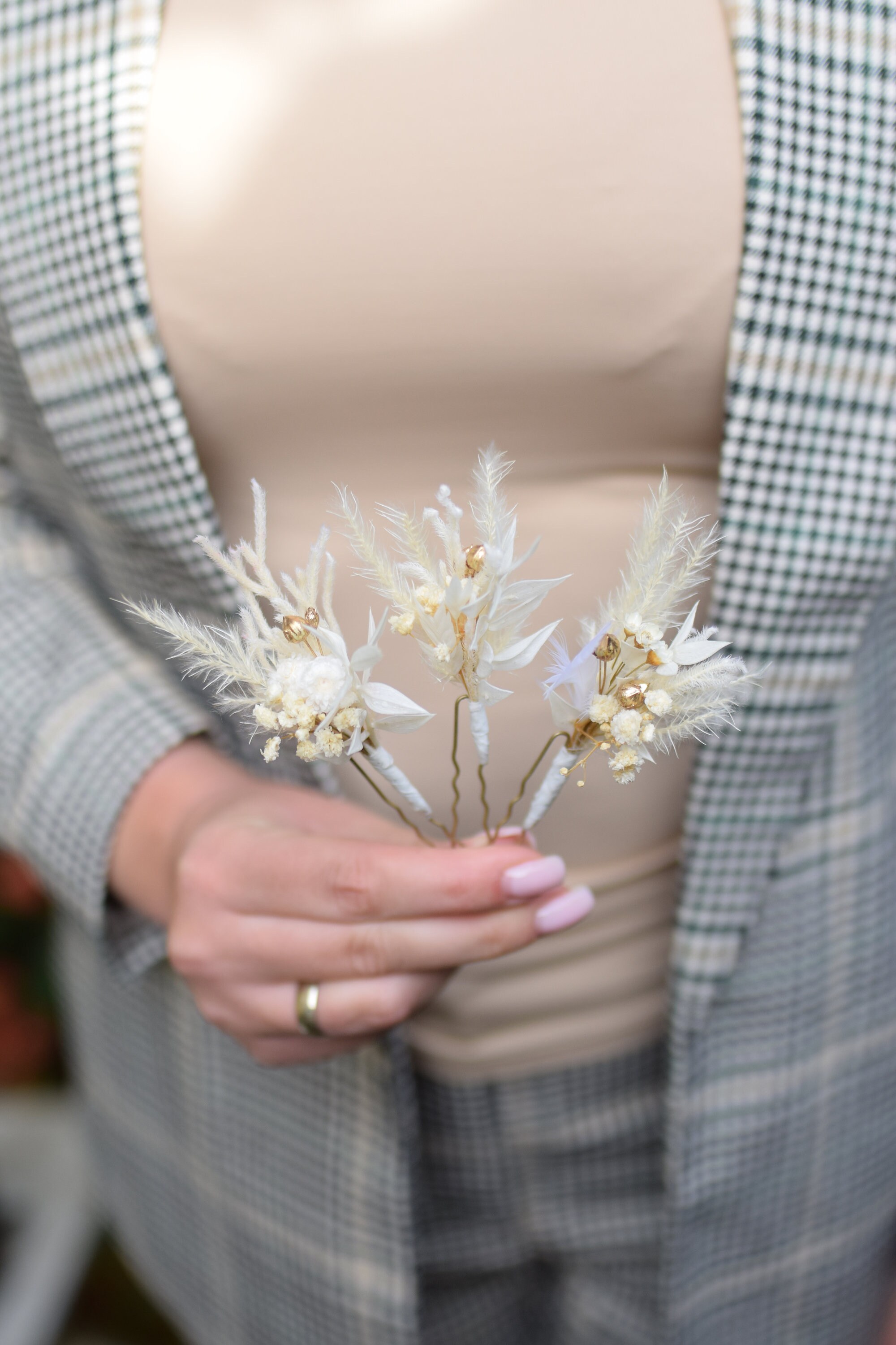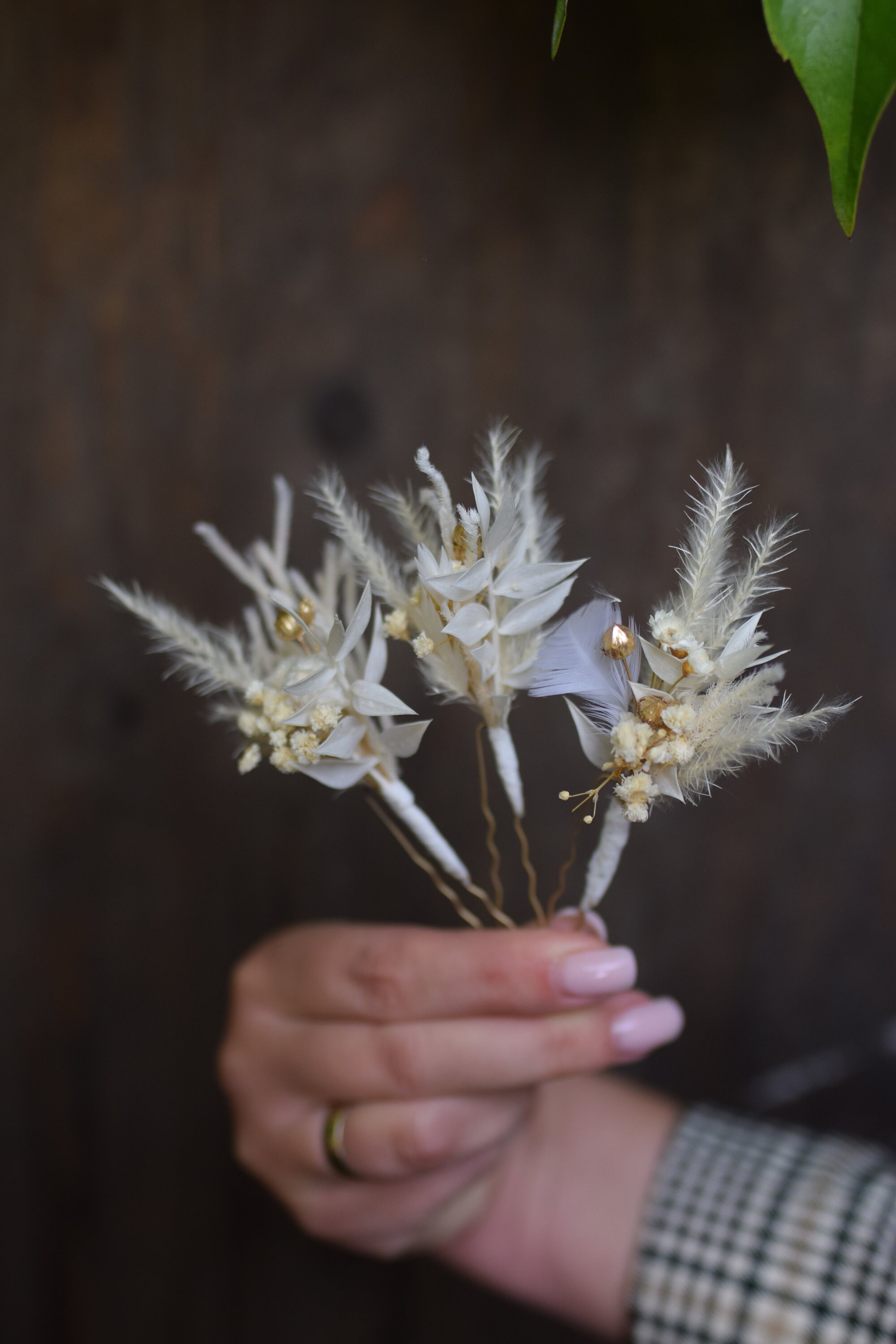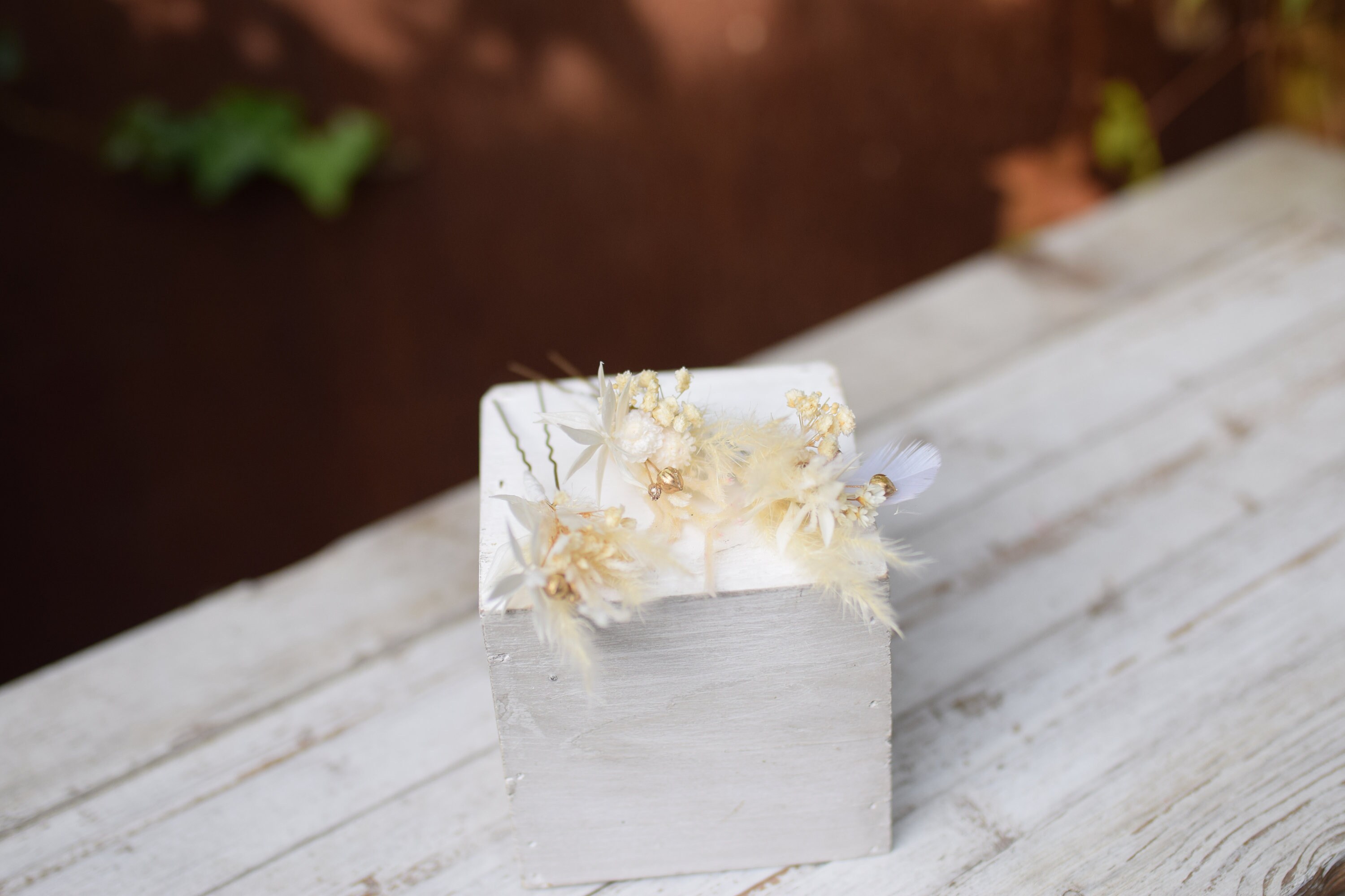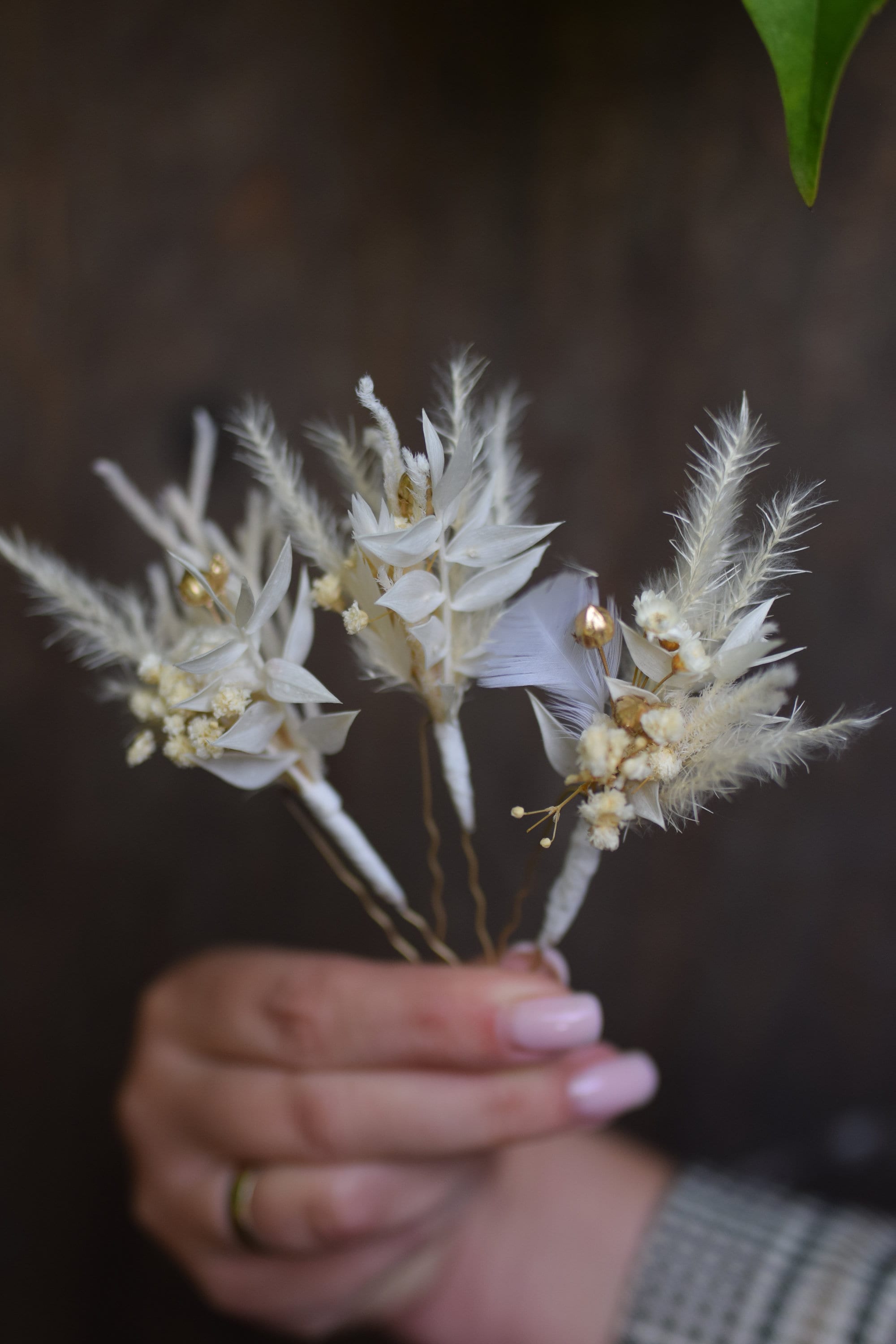 Rustykalne wsuwki do włosów z stabilizowanych kwiatów. Dekoracja jest wykonana jest z niezwykłą dbałością o szczegóły Jest to idealna propozycja ozdoby włosów dla panny młodej na ślub, wieczór panieński, pierwszą komunię oraz prezent, sesję zdjęciową, festiwal lub urodziny Baza wsuwki jest metalowa Kompozycja wykonana jest z suszonych i stabilizowanych kwiatów zatem jest długotrwała. Aby była piękna przez bardzo długi czas wystarczy trzymać ja z dala od deszczu lub wilgoci. Suszone i stabilizowane rośliny są trwałe, pod warunkiem, że są odpowiednio przechowywane , czyli dala od światła słonecznego, aby uniknąć blaknięcia kolorów, źródeł ciepła, ekstremalnego zimna i wilgoci. Staram się tworzyć moje projekty kwiatowe tak, aby wyglądały jak na zdjęciu, ale ponieważ używam kwiatów naturalnych, mogą występować różnice w odcieniu. Jeśli chciałabyś zamówić więcej sztuk niż widzisz na liście, napisz do mnie , a ja z przyjemnością stworzę wybrana ilość dla Ciebie. Wiele z moich produktów to projekty indywidualne które tworzę na Wasze specjalne zamówienie. Byłabym bardzo szczęśliwa mogąc pracować z tobą, aby stworzyć dokładnie to, czego szukasz! Inne moje prace możesz też znaleźć na Instagramie i Pintereście https://www.instagram.com/projekt_wianki/ https://pl.pinterest.com/pwianki/ Dziękuję za wizytę w naszym sklepie.