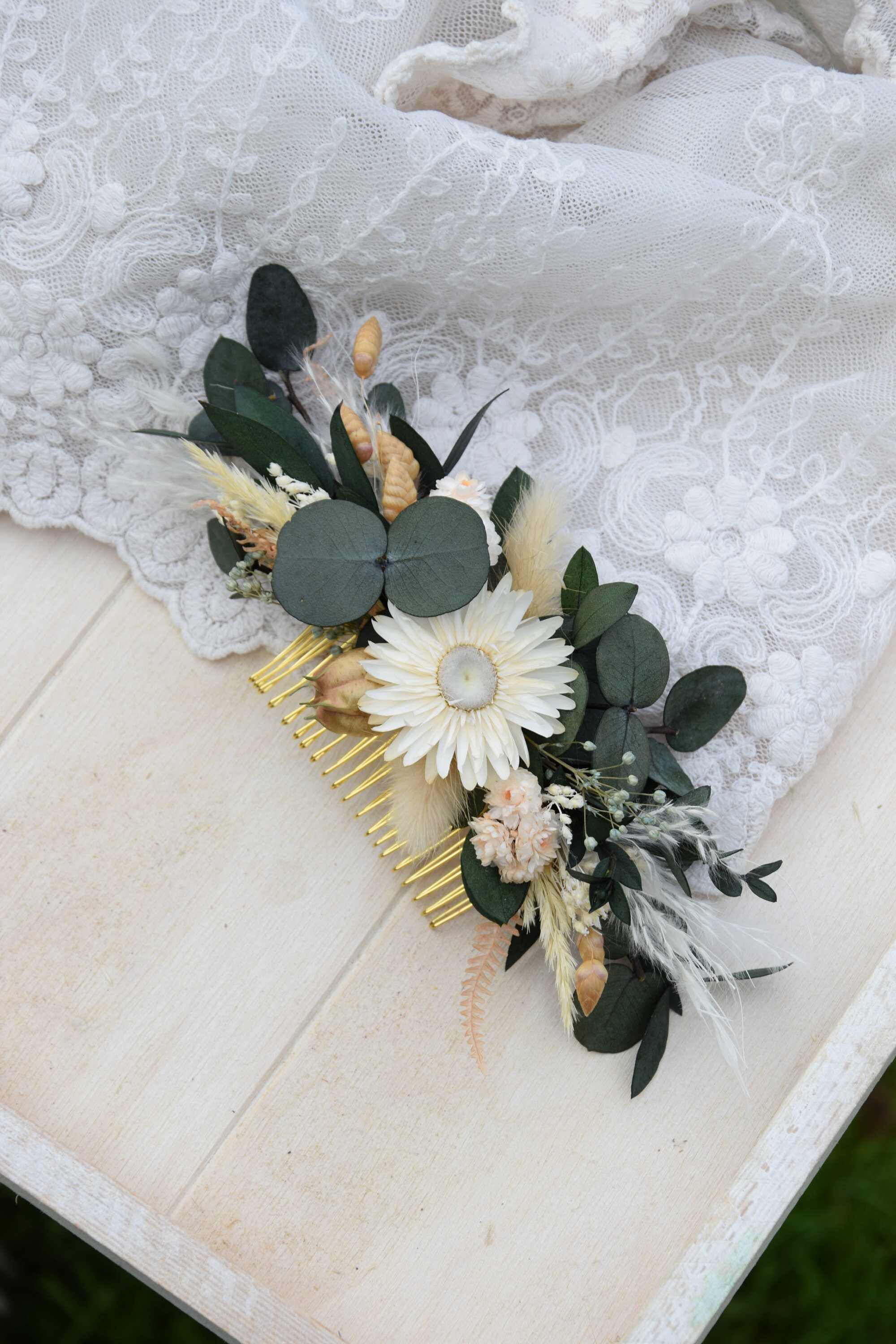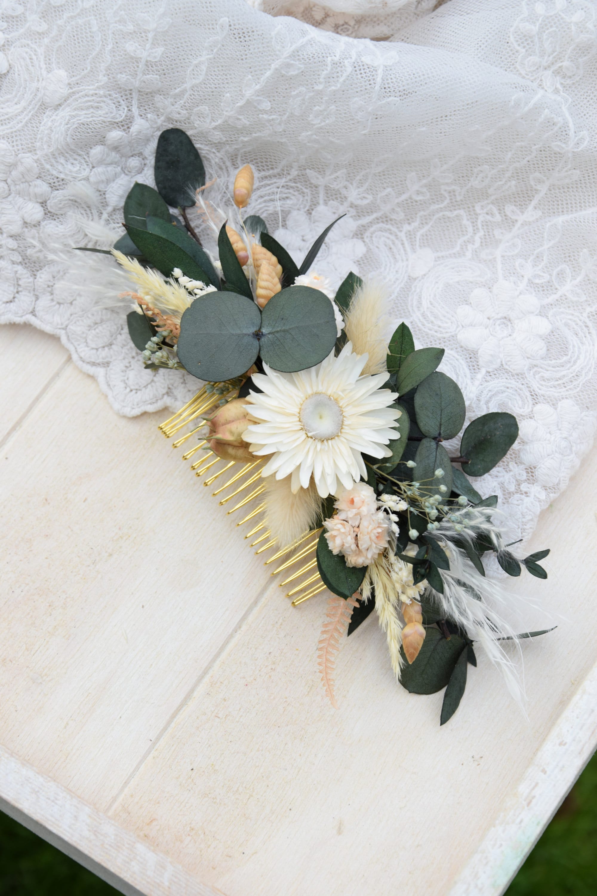 Grzebyk do włosów z suszonych i stabilizowanych kwiatów, rustykalna ozdoba ślubna, naturalne dodatki dla panny młodej, rustykalne wesele