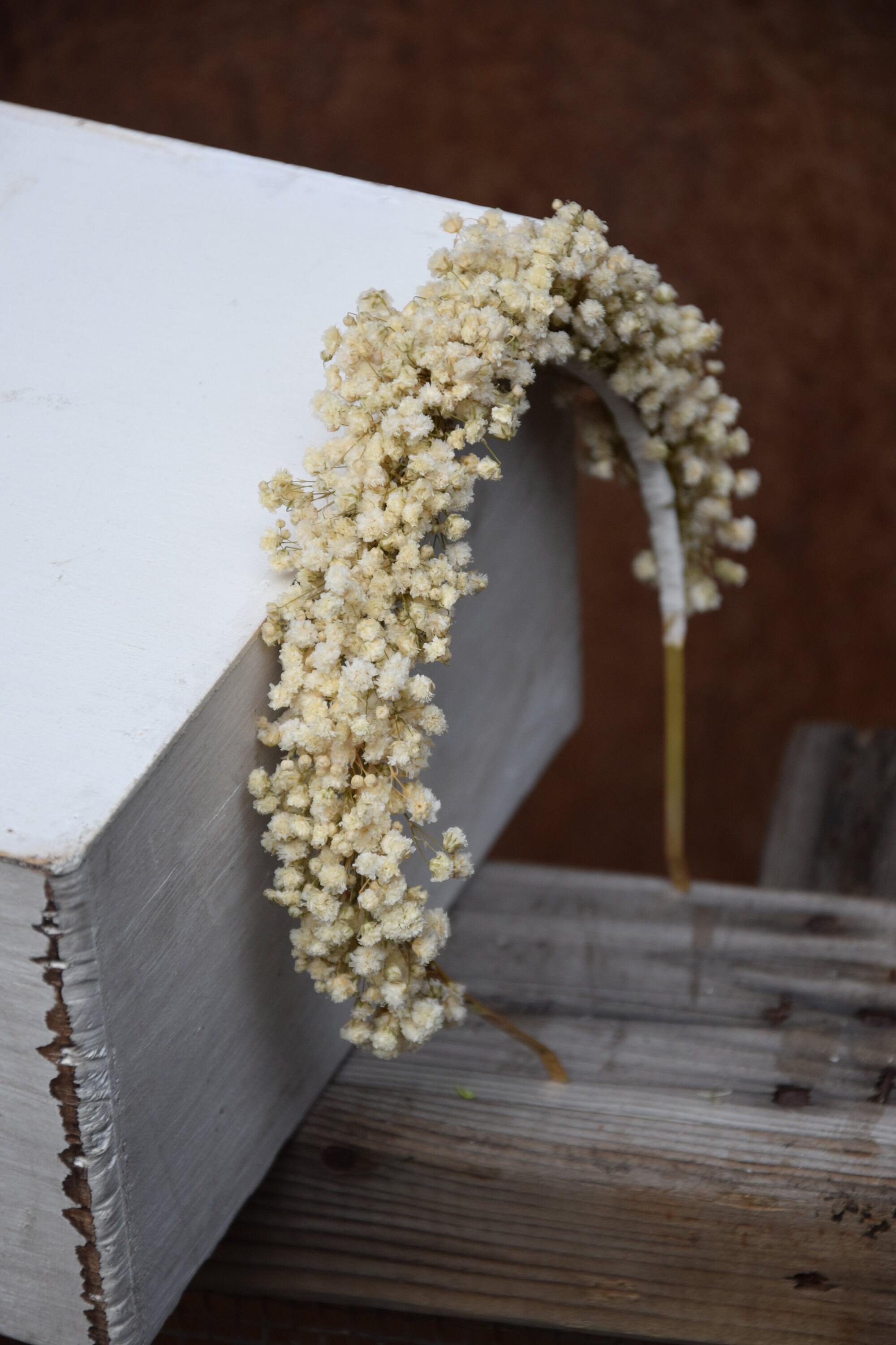 Opaska na głowę z stabilizowanej gipsówki w naturalnym kolorze
