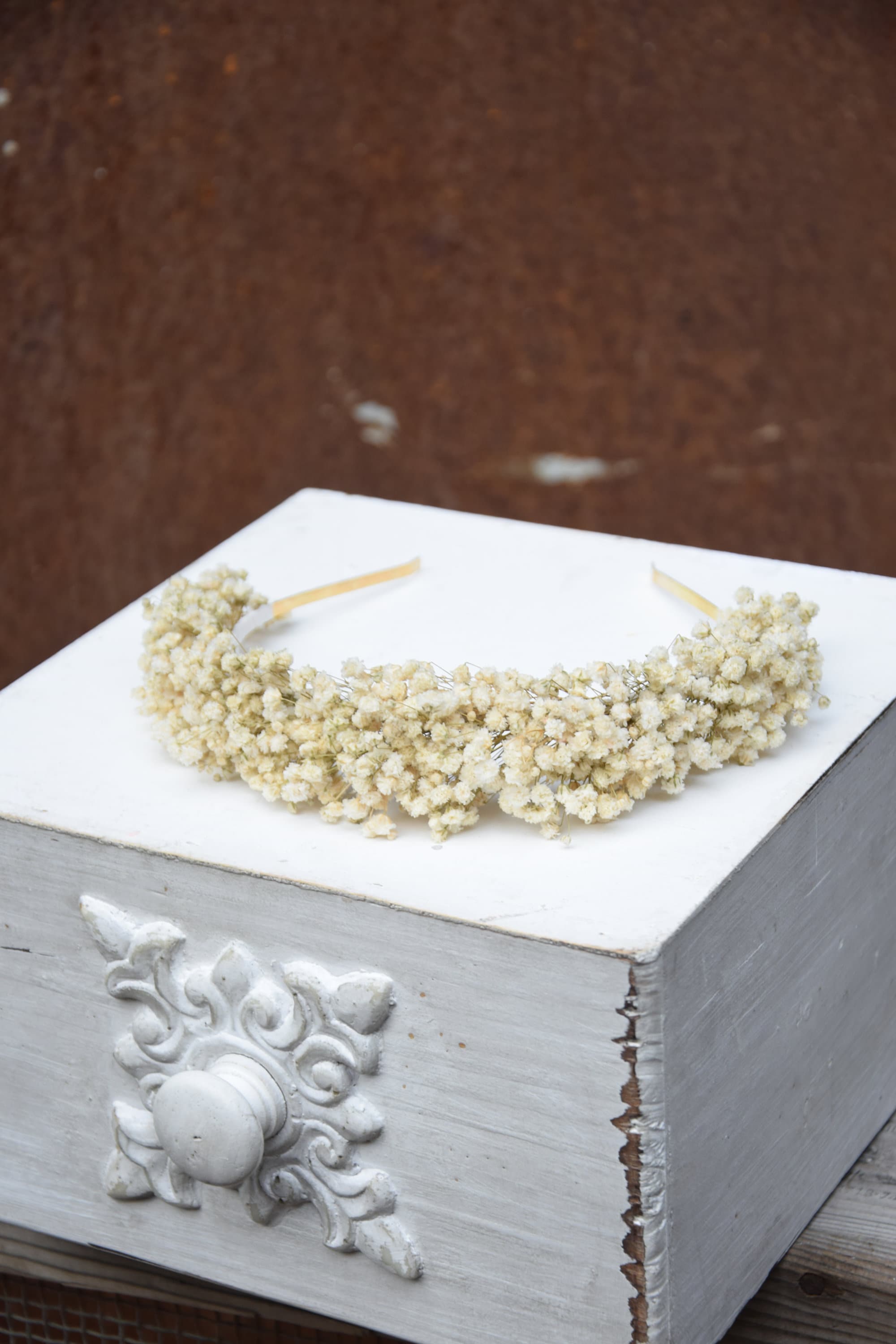 Rustykalna, unikatowa opaska na głowę z stabilizowanej białej gipsówki Opaska na głowę wykonana jest z niezwykłą dbałością o szczegóły Opaska na głowę to idealna propozycja na ślub, wieczór panieński, pierwszą komunię oraz prezent, sesję zdjęciową, festiwal lub urodziny Baza opaski na głowę jest metalowa Kompozycja wykonana jest z suszonych kwiatów zatem jest trwała. Aby była piękna przez bardzo długi czas wystarczy trzymać ja z dala od deszczu lub wilgoci. Suszone i stabilizowane rośliny są trwałe, pod warunkiem, że są odpowiednio przechowywane , czyli dala od światła słonecznego, aby uniknąć blaknięcia kolorów, źródeł ciepła, ekstremalnego zimna i wilgoci. Staram się tworzyć moje projekty kwiatowe tak, aby wyglądały jak na zdjęciu, ale ponieważ używam kwiatów naturalnych, mogą występować różnice w odcieniu. Jeśli chciałabyś zamówić więcej sztuk niż widzisz na liście, napisz do mnie , a ja z przyjemnością stworzę wybrana ilość dla Ciebie. Wiele z moich produktów to projekty indywidualne które tworzę na Wasze specjalne zamówienie. Byłabym bardzo szczęśliwa mogąc pracować z tobą, aby stworzyć dokładnie to, czego szukasz! Inne moje prace możesz też znaleźć na Instagramie i Pintereście https://www.instagram.com/projekt_wianki/ https://pl.pinterest.com/pwianki/ Dziękuję za wizytę w naszym sklepie.