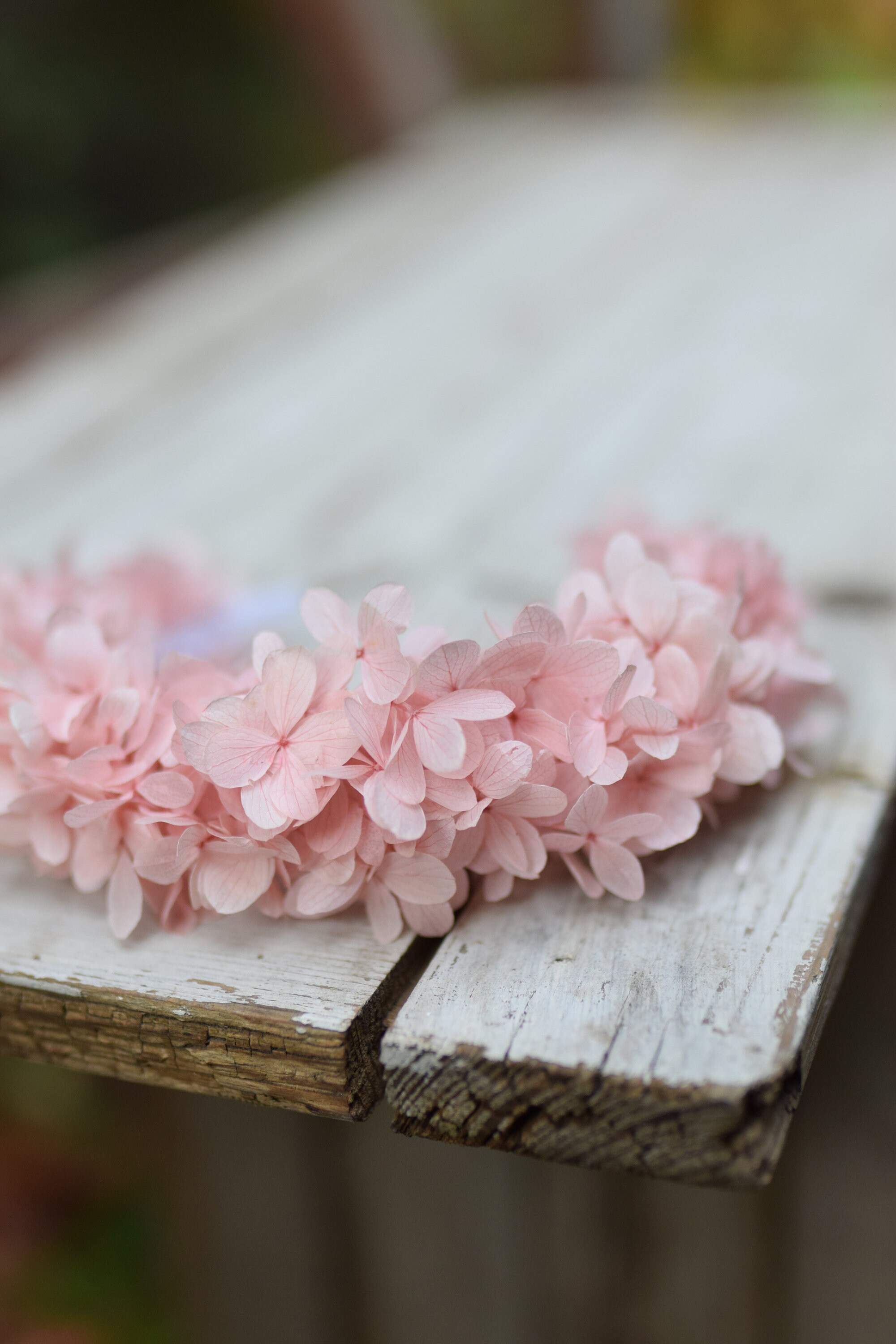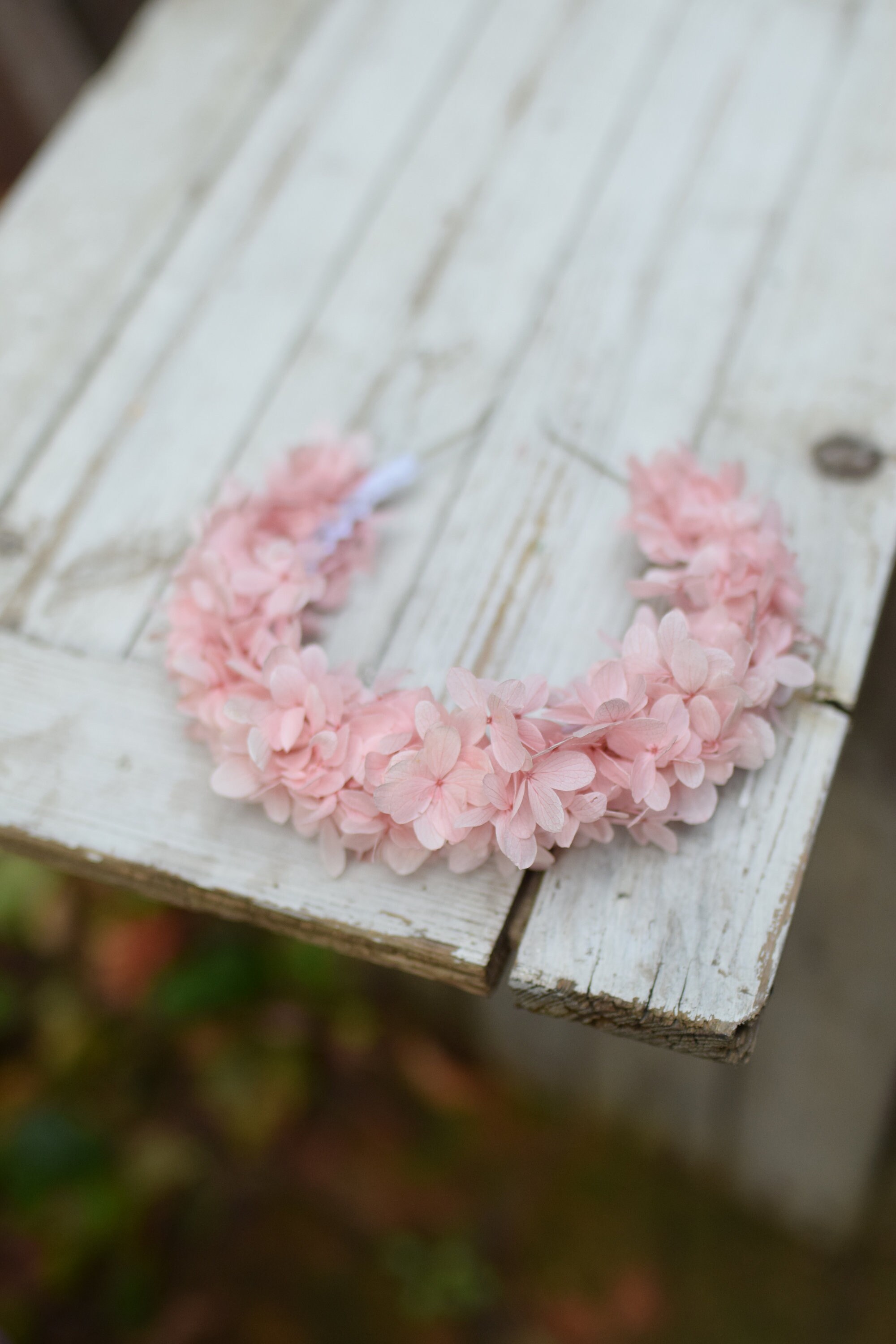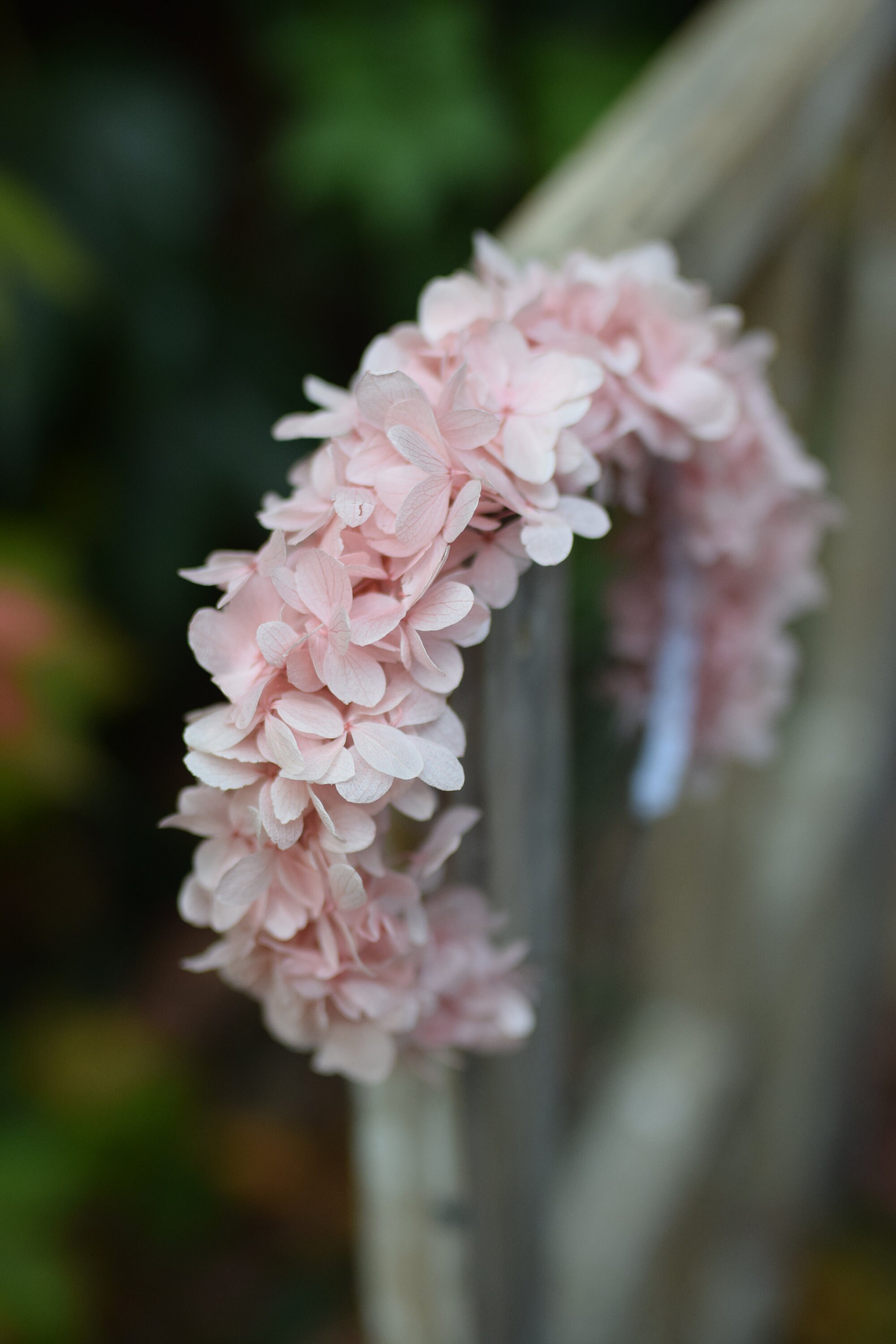 Opaska na głowę z stabilizowanej różowej hortensji