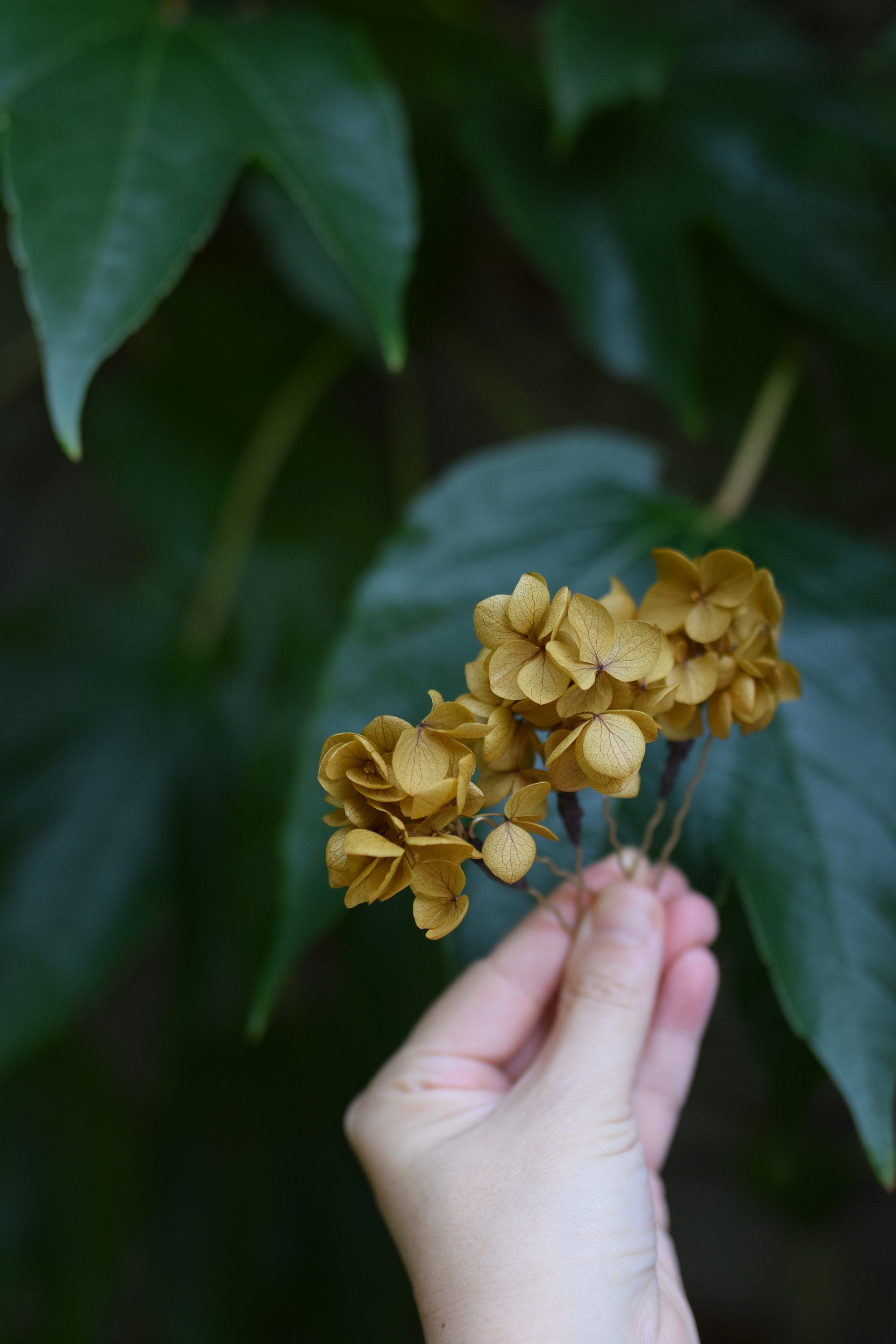 Kokówki do włosów z żółtej hortensji